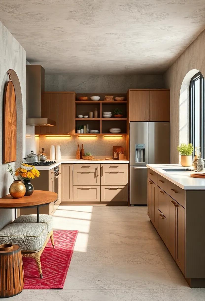 - Use complementary backsplash tiles that reflect tones from both cabinet styles for seamless integration.