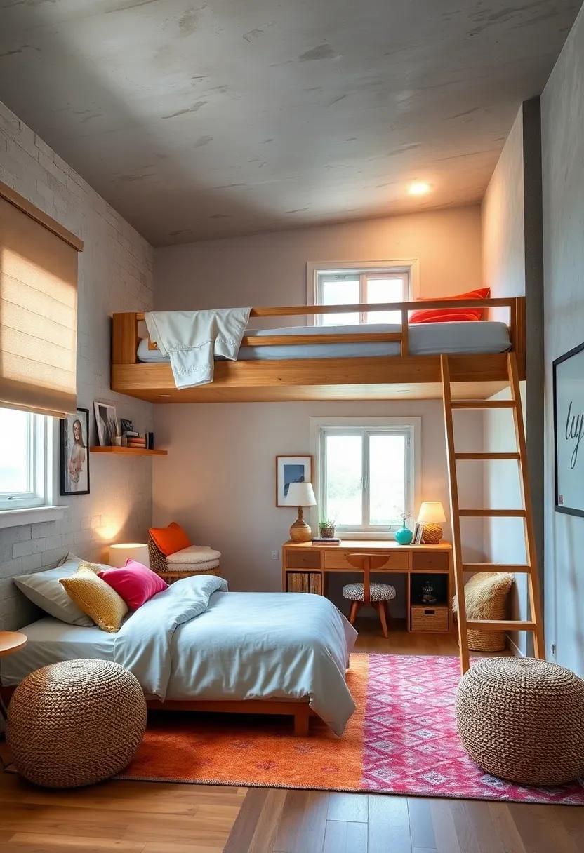 Maximizing functionality in such compact rooms often means smart storage solutions tucked neatly under the loft.Whether it’s custom-built drawers, a cozy reading nook, or a small desk, this dual-purpose area encourages creativity and organization with style. The simplicity of the monochrome palette also makes it easy to swap out accents as tastes evolve—think colorful bean bags, vibrant lamps, or themed bedding—ensuring the room remains adaptable and fresh for years to come.