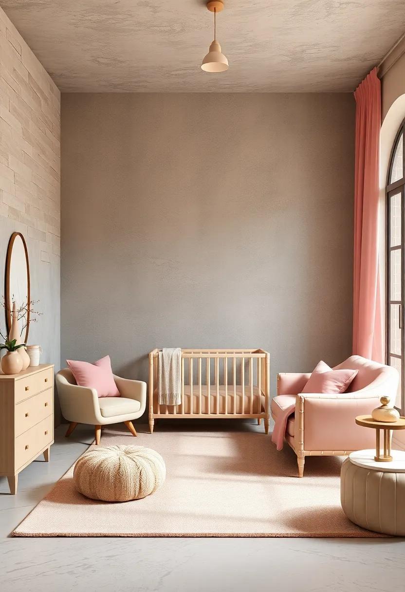 Transform your nursery into a serene sanctuary by combining soft blush walls with warm beige accents, creating a harmonious balance that feels both tender and inviting. The gentle pink backdrop sets a whisper-soft foundation, while beige elements like plush cushions, cozy rugs, and wooden furniture infuse the space with a grounding warmth. This pairing evokes a comforting cocoon, perfect for nurturing your little one’s early days with calm and softness. Complement with delicate textures—in velvet throws or woven baskets—to add depth without overwhelming the gentle palette.