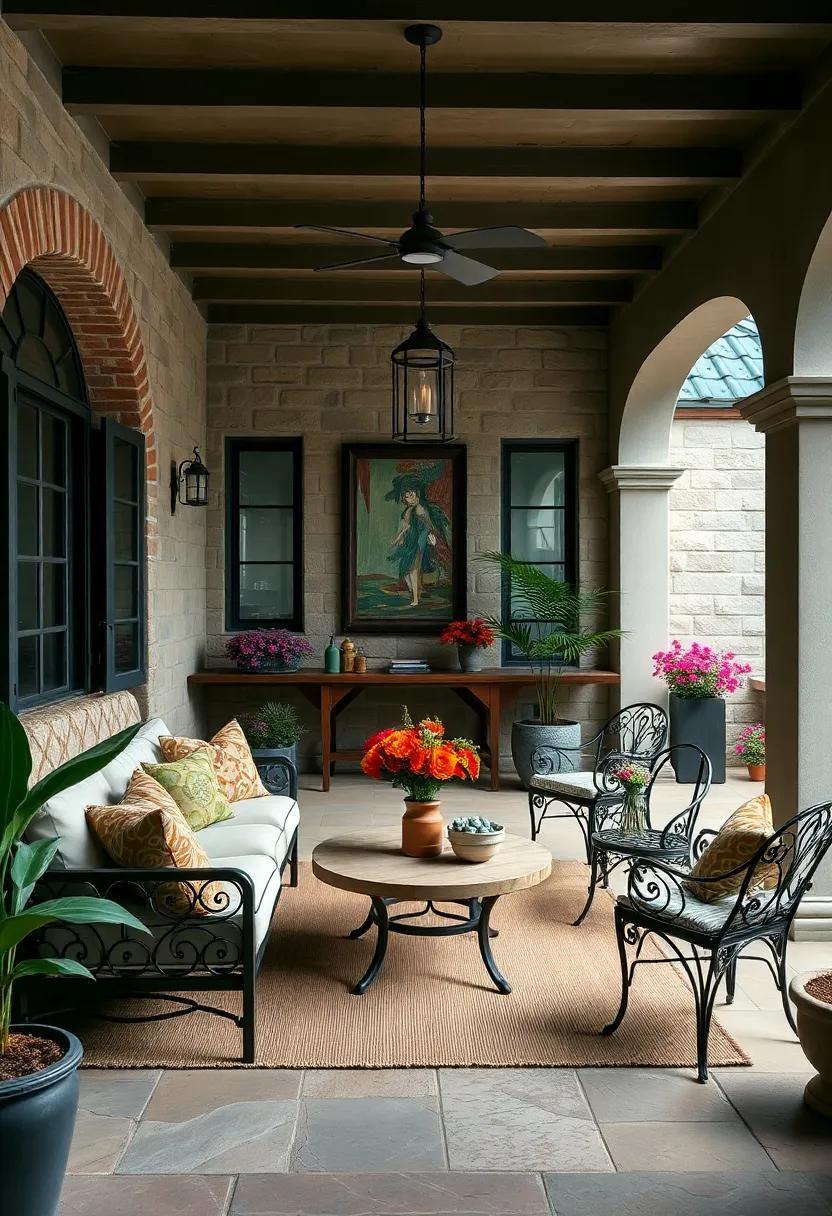 - Material Harmony: Matte black wrought iron pairs with natural stone and aged wood.