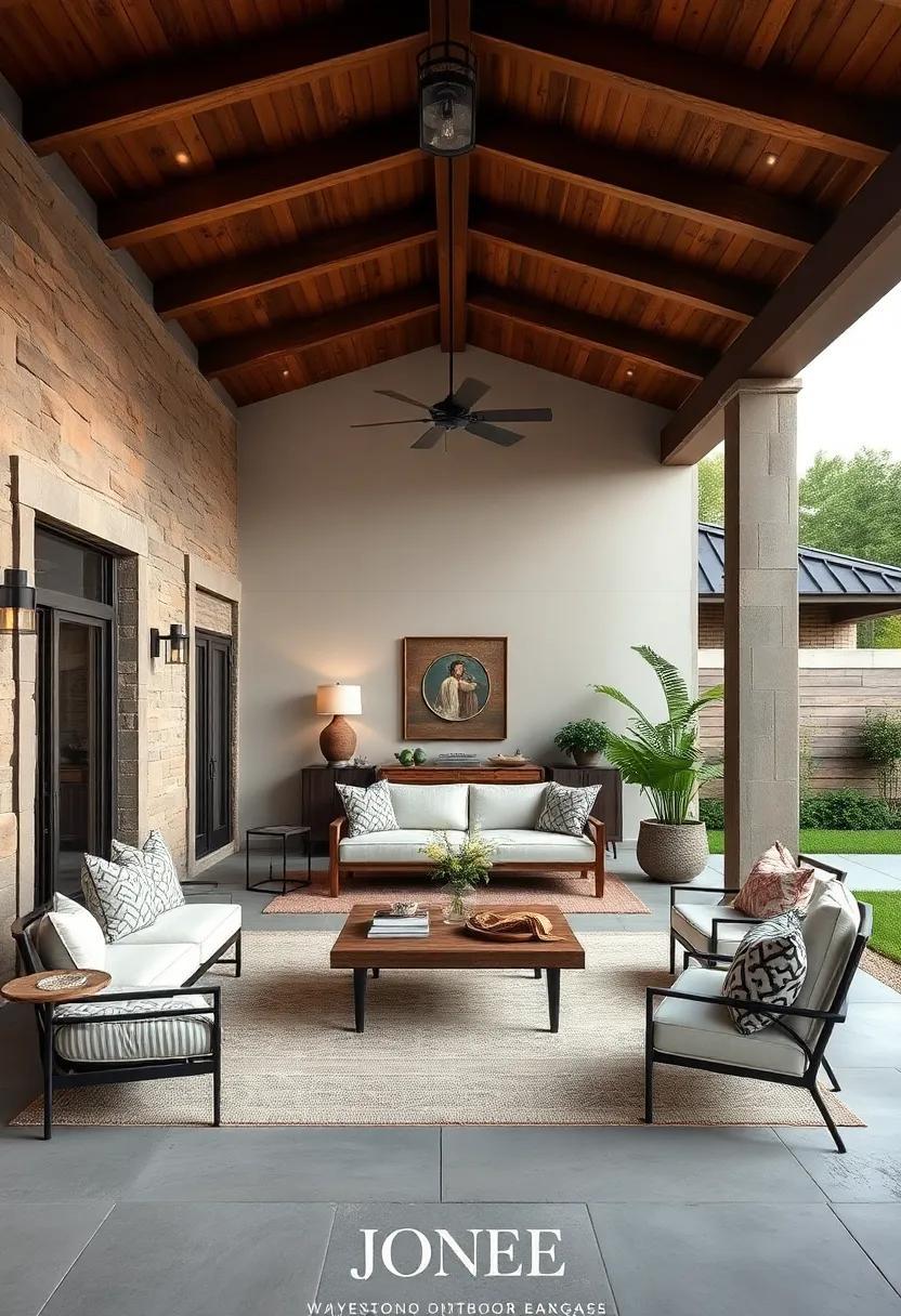 Expansive stone patios with wrought-iron furniture blending comfort and countryside charm