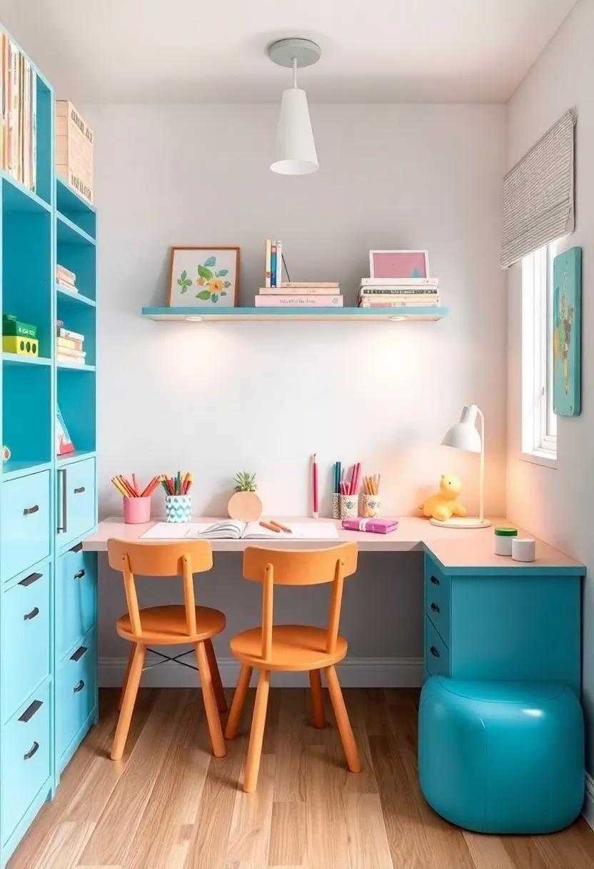 With the right blend of stimulating colors and efficient organization, this small space becomes a hub for exploration and artistic flair!