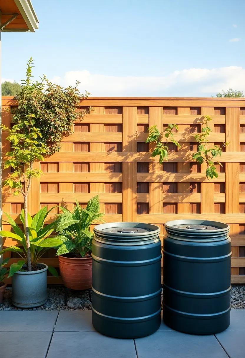 with thoughtful combinations, your rain barrels will become an attractive feature in your sustainable outdoor space, merging functionality with natural beauty.
