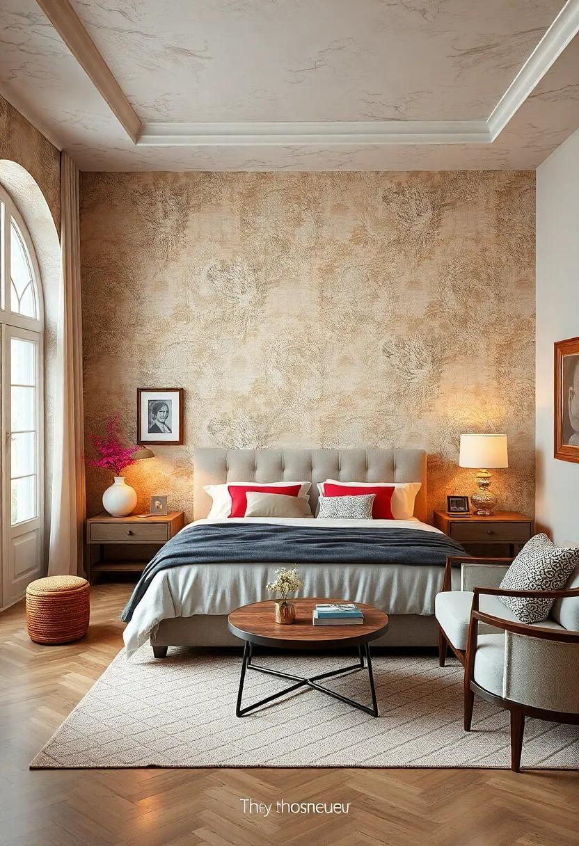 Old World Textures: Wallpaper with faux textures like parchment or plaster adds a tactile vintage appeal