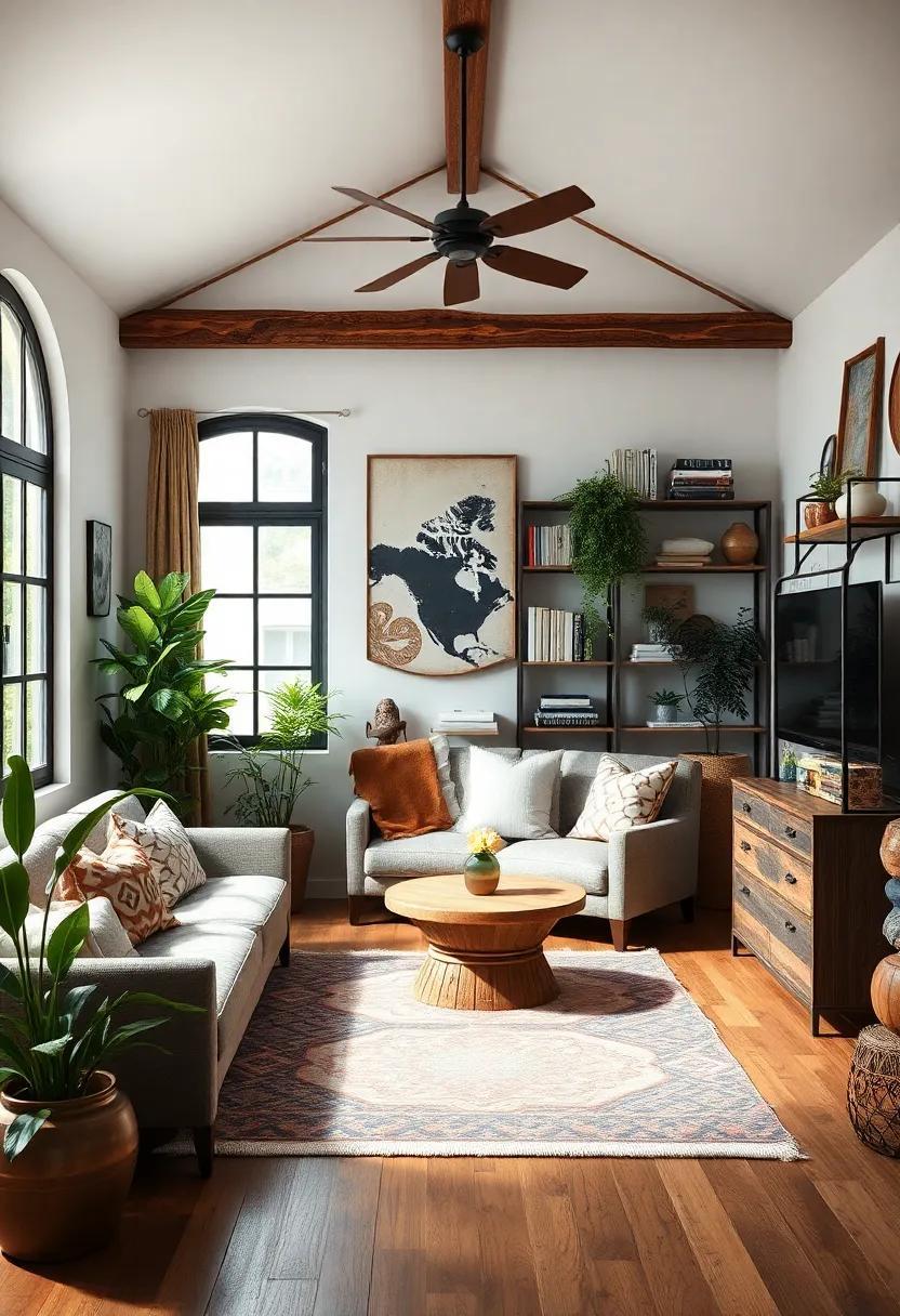 Adding a variety of plants to your eclectic home is a brilliant way to enhance its character while providing a soothing contrast to rustic elements. Consider mixing different types of greenery — think tall floor plants, cascading vines, and dainty succulents — to create visual interest. This combination not only softens the harsh edges of wooden beams or metal fixtures,but it also unifies diverse decor styles into a cohesive look. Place plants in unique containers such as mismatched ceramic pots, colorful baskets, or vintage teacups to enhance the eclectic vibe even further.