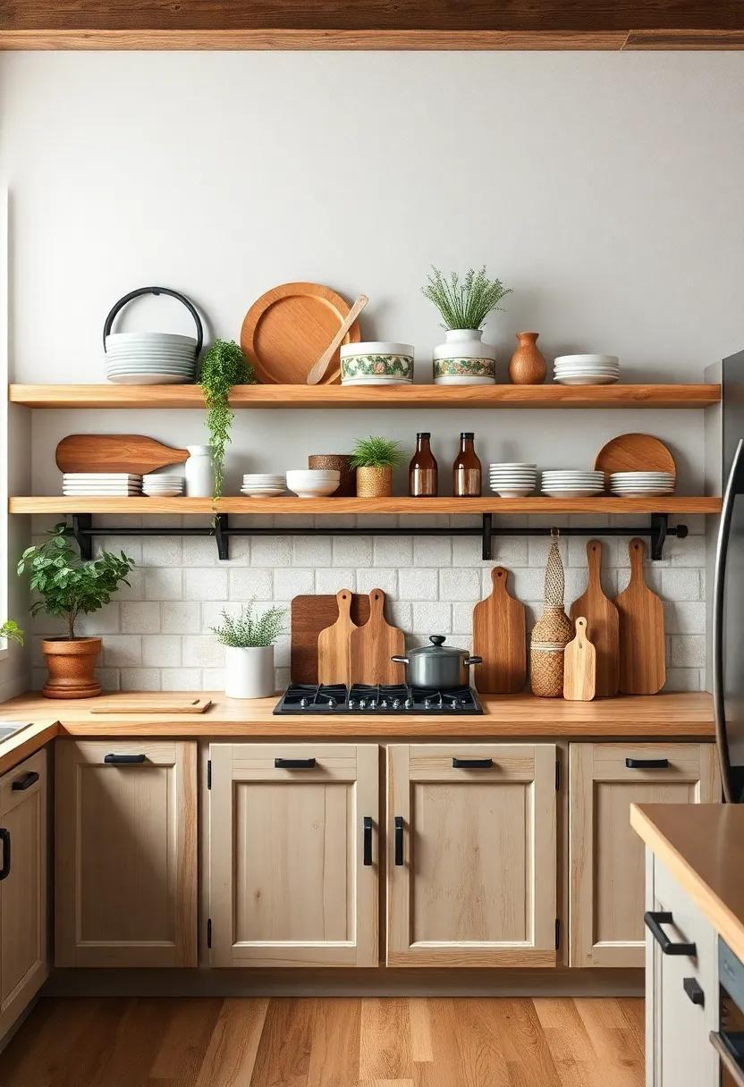 When it comes to styling, you can further amplify the rustic vibe by integrating elements such as woven baskets to hold smaller items, and vintage jars for spices and dry goods. Adding a pop of greenery with potted herbs on the shelves can infuse life into the space while maintaining an organic feel. Here are some creative ideas to consider: