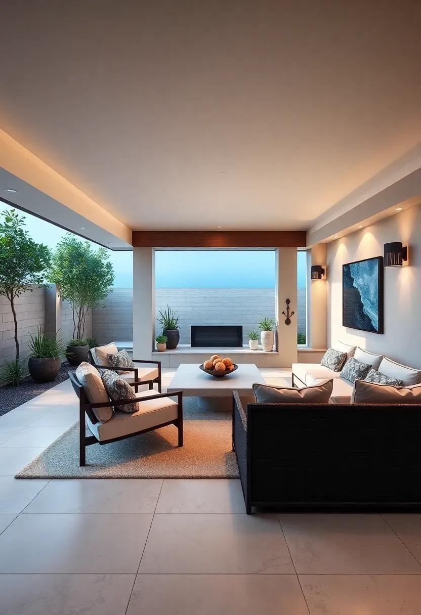 Lighting plays a vital role in achieving a sophisticated look. Opt for subtle lighting fixtures like linear pendant lights or recessed LED strips that highlight architectural features without drawing too much attention. A focus on functionality is key—consider multi-purpose furniture like ottomans that double as storage or side tables that can be easily rearranged. To tie it all together, thoughtful landscaping with undulating greenery or minimalist garden art will ensure that your outdoor lounge remains a peaceful retreat that you can enjoy year-round.