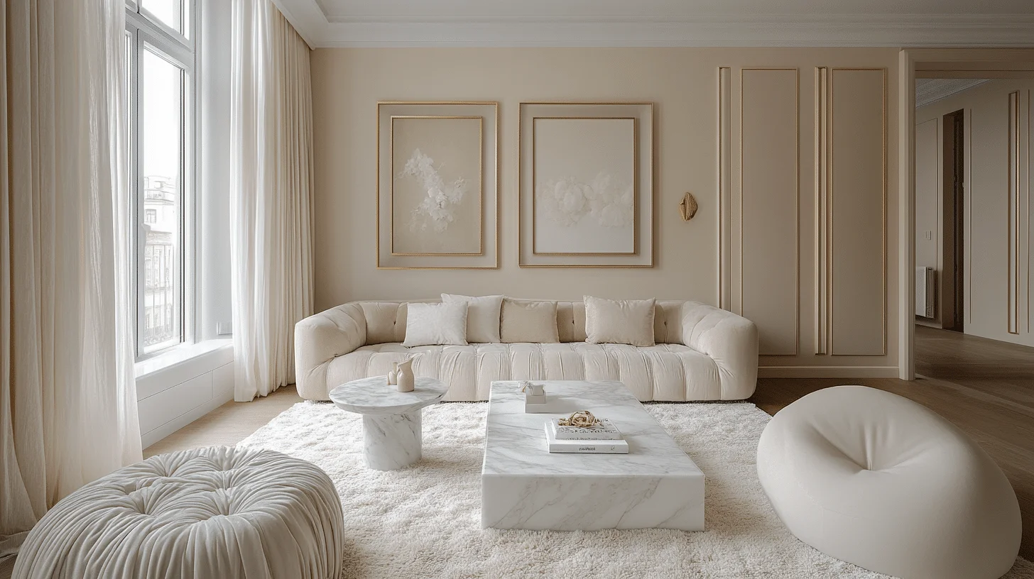 Cozy Neutral Comfort focuses on warm creams, faux fur throws, and plush cushions to create a snug yet elegant environment. Soft rugs and chunky knits add inviting textures, while rose gold or blush accents maintain a feminine touch. This theme is ideal for relaxing weekends and spaces that prioritize comfort with style.