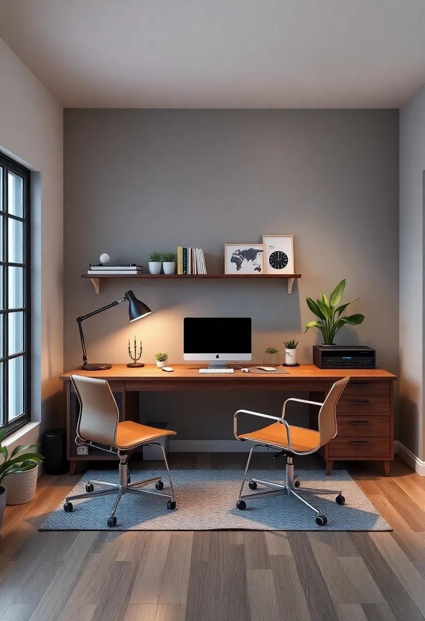 Transform your home office into a stylish and functional workspace by integrating industrial materials for partitioning. Metal screens offer a sleek, modern aesthetic and can be configured in various ways to allow light while creating personal zones. Consider incorporating perforated metal panels that not only enhance ventilation but can also serve as stylish bulletin boards or decorative backdrops. Alternatively, wood dividers can evoke a more organic feel, with live-edge designs or reclaimed wood adding character to your setup. The beauty of these dividers is that they promote both privacy when you need focus and openness that fosters collaboration during brainstorming sessions.