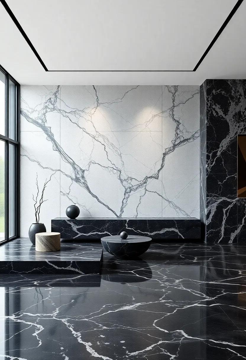 Black Marble Accent Wall: Make a bold statement in any room with an accent wall that highlights the beauty of black marble
