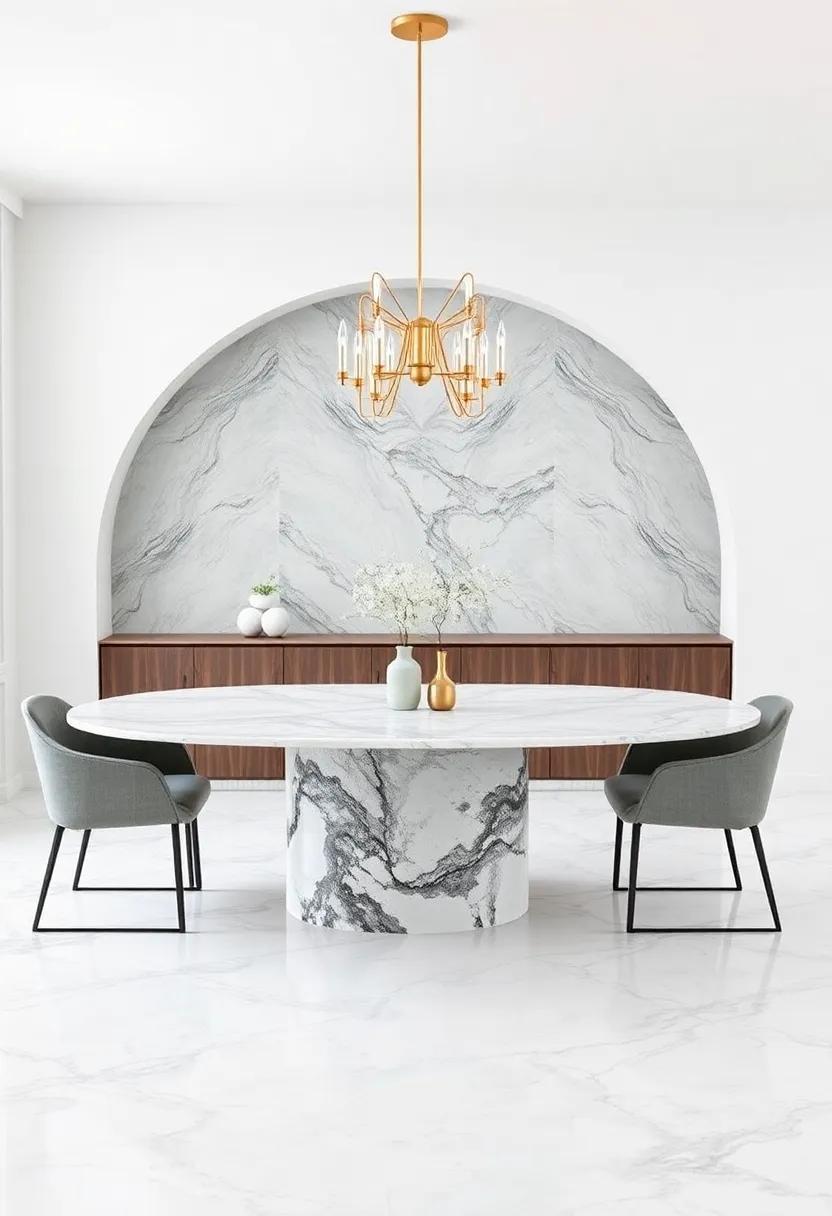 Elevate the aesthetic of your dining area by showcasing a remarkable piece of contemporary art above your marble dining table. This choice not only enhances the cultural ambiance of your space but also serves as a focal point that captivates guests’ attention and ignites meaningful conversations. think bold colors, abstract shapes, or even thought-provoking installations that mirror your personal style or spark curiosity. An exquisite artwork acts as a bridge between the elegance of your marble surface and the narrative you wish to convey in your home.