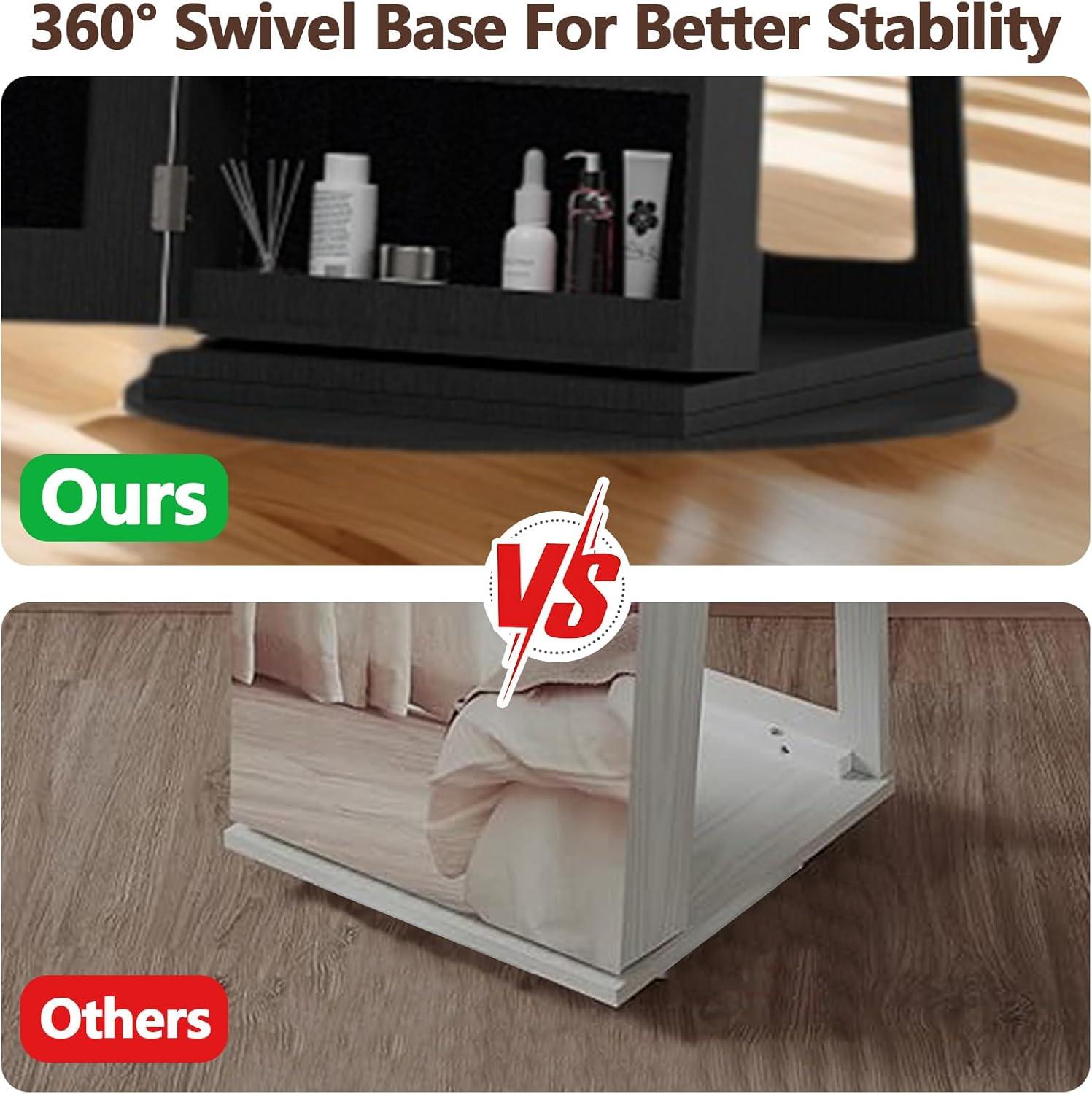 | 360° Swivel Base | Effortless rotation for optimal mirror angle and item access |