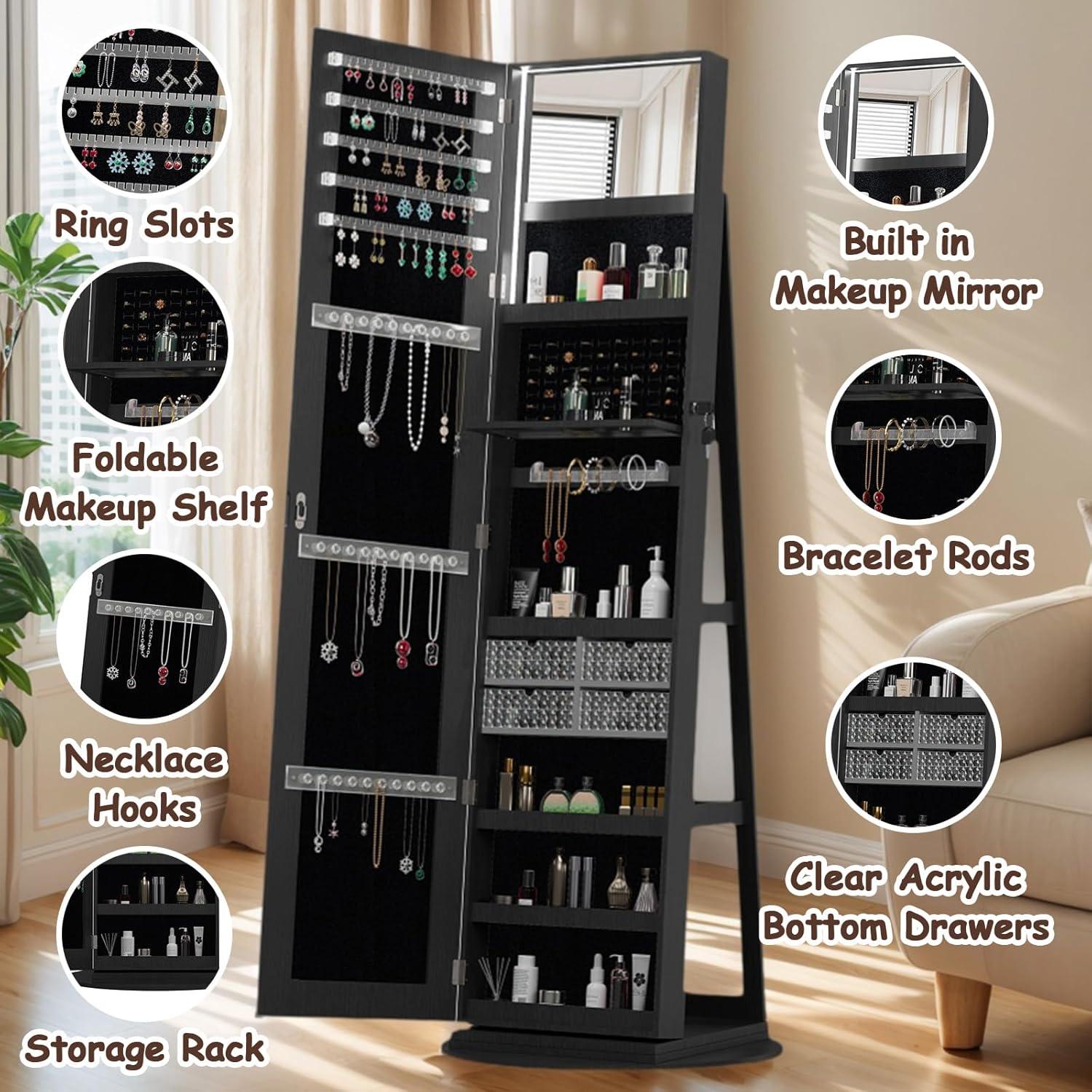 If you’ve ever struggled to keep your jewellery organized while also needing a full-length mirror, this 360° Swivel Jewelry Armoire might just be the answer. We recently spent some time with this lockable, standing cabinet in an elegant antique black finish, and found that it brilliantly combines style and functionality. From the notable storage options inside-complete with velvet-lined compartments-to the clever 360-degree swivel base and built-in makeup mirror, this piece promises to streamline your daily routine. While assembly took a bit of patience,the end result is a versatile organizer that fits beautifully in bedrooms,cloakrooms,or living spaces. Join us as we explore what makes this jewelry armoire stand out and where it might fall a little short.