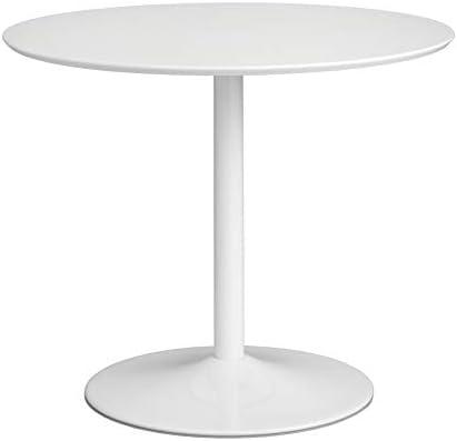 This round dining table presents a captivating blend of contemporary design and practical utility, making it an excellent addition to any small living space. With its sleek laminated MDF tabletop and a striking chrome-plated base, it effortlessly enhances the aesthetics of your dining area. The table measures 29.1 inches in height with a diameter of 35.4 inches, fitting seamlessly into corners or smaller rooms, perfect for apartments, condos, or dorms. Enjoy versatility as this piece can serve multiple purposes, whether for cozy meals, informal gatherings, or even as a workspace for creative projects.
