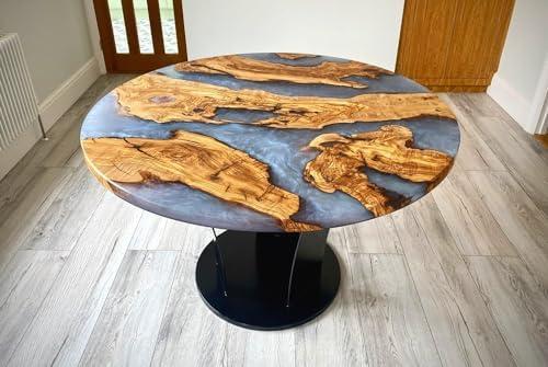 This exquisite round table top features a stunning blue ocean multi-river look that effortlessly adds a touch of luxury to any space. Measuring 24 x 24 inches, it’s crafted with meticulous attention to detail, combining resin with walnut for a unique aesthetic appeal. Each piece is custom-made, allowing for personalization in sizes, shapes, and color combinations, ensuring that you get a table that perfectly fits your decor style. The incorporation of live edge wood patterns offers a warm, natural feel alongside the artistic resin design, resulting in a furniture piece that doubles as a conversation starter and an art installation.