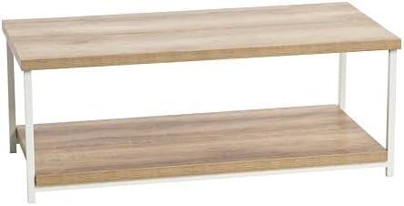 This modern rustic coffee table is a perfect fit for contemporary living spaces, blending elegance with practicality. Its wide top offers ample space for snacks, decor, or magazines, while the lower shelf provides additional storage for blankets, shoes, and books. The combination of a smooth faux wood laminate surface and a sleek white metal frame ensures durability and a chic aesthetic. The minimalist steel construction promises longevity, making it ideal for family gatherings, watch parties, or casual home decor. Plus, its versatile design allows it to function as a work table or even a bedroom storage bench.