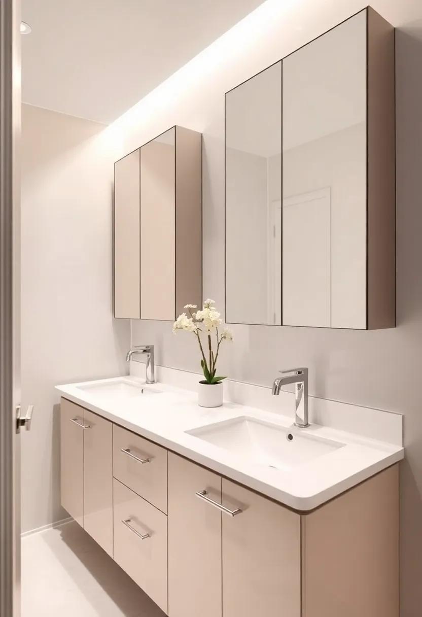 - Layered Lighting: Combine the reflective surfaces of the cabinets with ambient lighting fixtures to create a warm glow that complements the mirrors.
