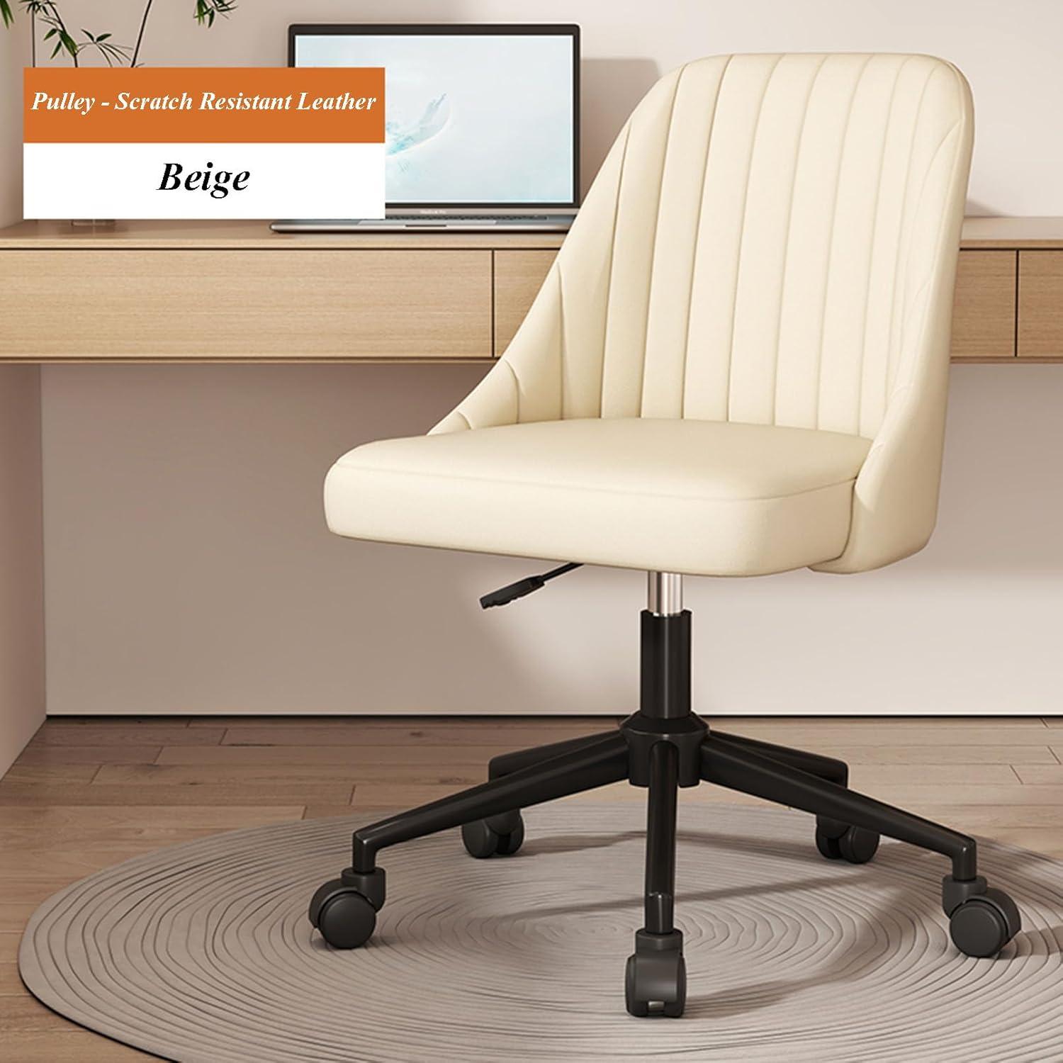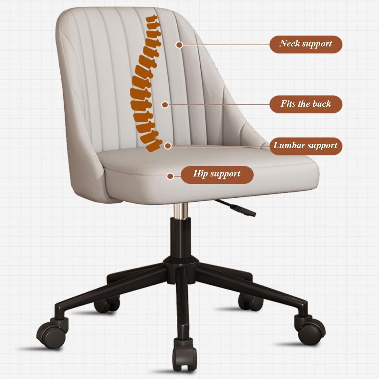 You catch⁢ the ‌chair out of the ​corner⁣ of your eye — a ⁢compact, armless shape that reads ⁢lighter than it looks. The listing calls it “Armless ⁢Office Desk Chair, PU Leather Padded Swivel vanity Chair Dining Chair, Mid Back Ergonomic Adjustable Wide⁤ Seat Computer Task Chair for Home Office Small‌ Space,” but ⁤in the room it simply reads as a neat, mid‑back swivel with a generously wide seat. when you ​set ⁢a ​hand on⁣ the cushion the​ PU surface is smooth adn ‍a touch cool,while the seat ⁢gives with a soft,sofa‑like resilience. From a few paces away the back shows faint perforation and a slightly different texture, a detail that​ makes it seem ‌more ventilated than a single slab of leather. Wheels whisper over ⁣the floor and the⁢ five‑star ⁣base keeps the visual balance low⁣ and steady, so the piece settles into ⁣the everyday⁤ rhythm rather than demanding attention.