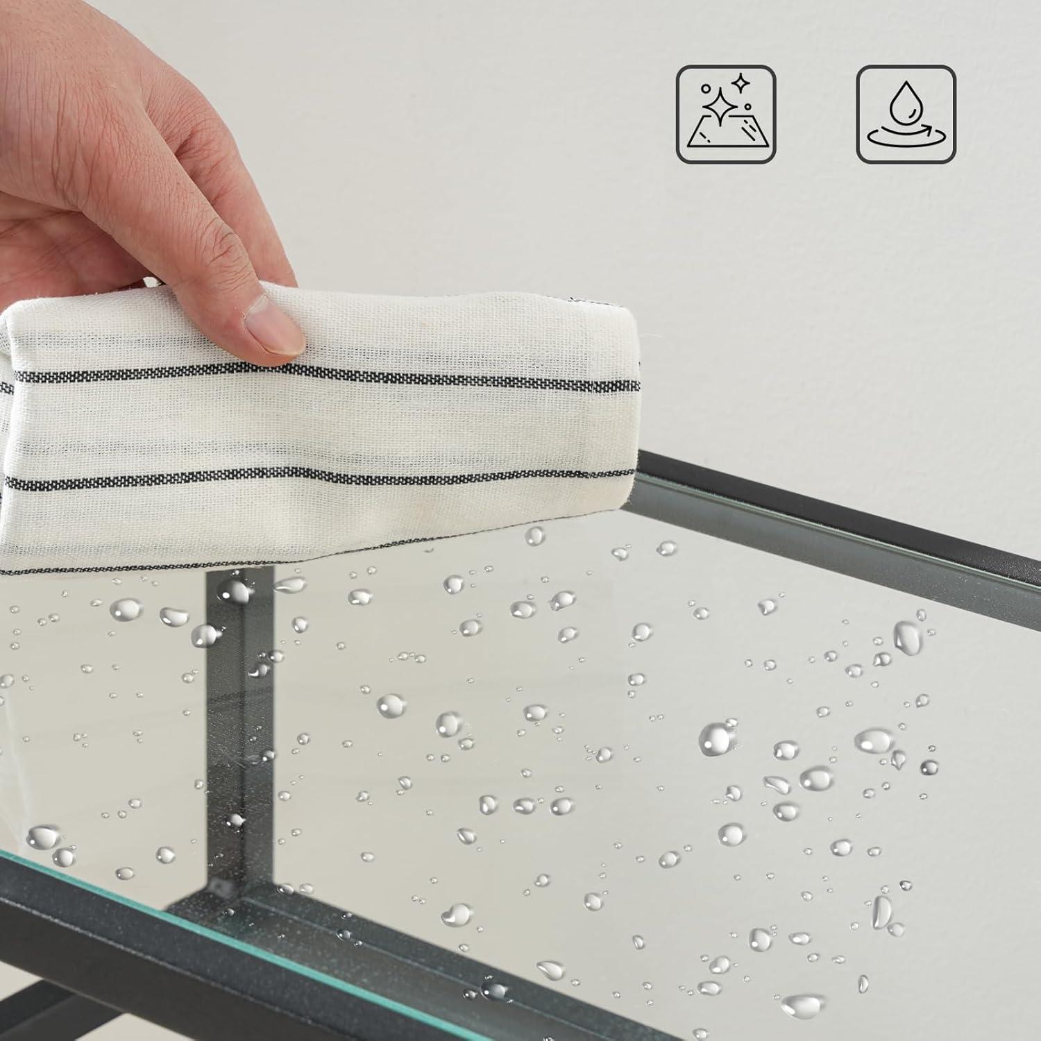 | elegant Aesthetic: the black metal frame paired with transparent tempered glass creates a sleek,modern look that livens up any room. | Fragility of glass: Despite tempered glass being tough, extra care is needed during assembly and daily use to prevent chips or cracks. |