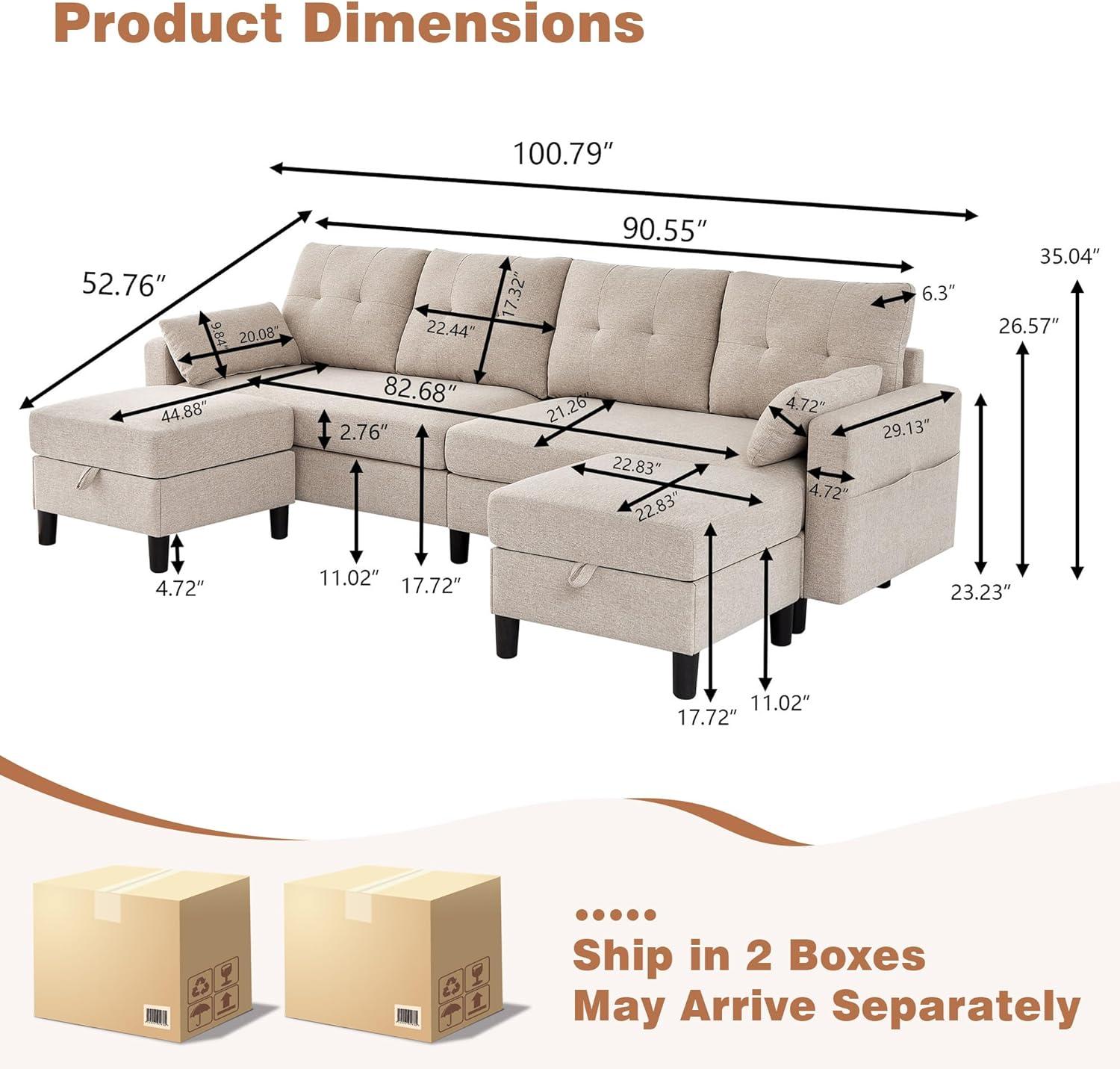 you notice how the ⁤Sectional Sofa with Storage Seats, 4 Seater U Shaped Couch with 2 Movable Ottoman Chaises for Living room, Polyester Cover & ‌Soft Cushions, 101″ Combination Sectional Couch, Beige settles into the room over time, softening edges and⁢ marking the spots⁣ people ​prefer. In daily routines the cushions⁣ ease‌ and the ottomans find ​habitual positions, while surface wear shows up as quiet, familiar shading rather than sudden ⁤changes. As the ​room ‍is⁤ used it helps shape small rhythms—where blankets accumulate, where you rest a⁣ mug—and its​ presence is mostly felt through habit ⁣and repetition. In your living room⁣ it​ simply stays.