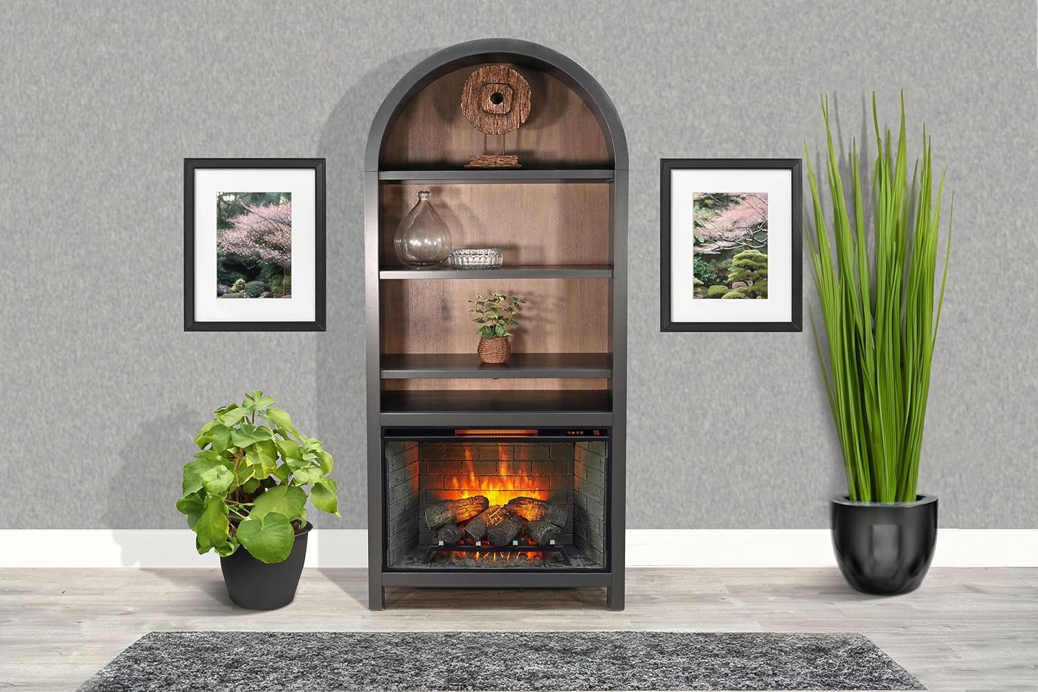 This piece masterfully blends elegant design with practical function, creating a centerpiece that enriches any room. Its tall, arched silhouette adds a graceful architectural element, while the rich natural wood finish evokes warmth and timeless beauty. Unlike typical bookcases, it includes a built-in electric fireplace that not only delivers cozy heat but also a captivating, adjustable flame effect. This combination is perfect for enhancing living rooms,home offices,or reading corners where style and comfort matter equally.