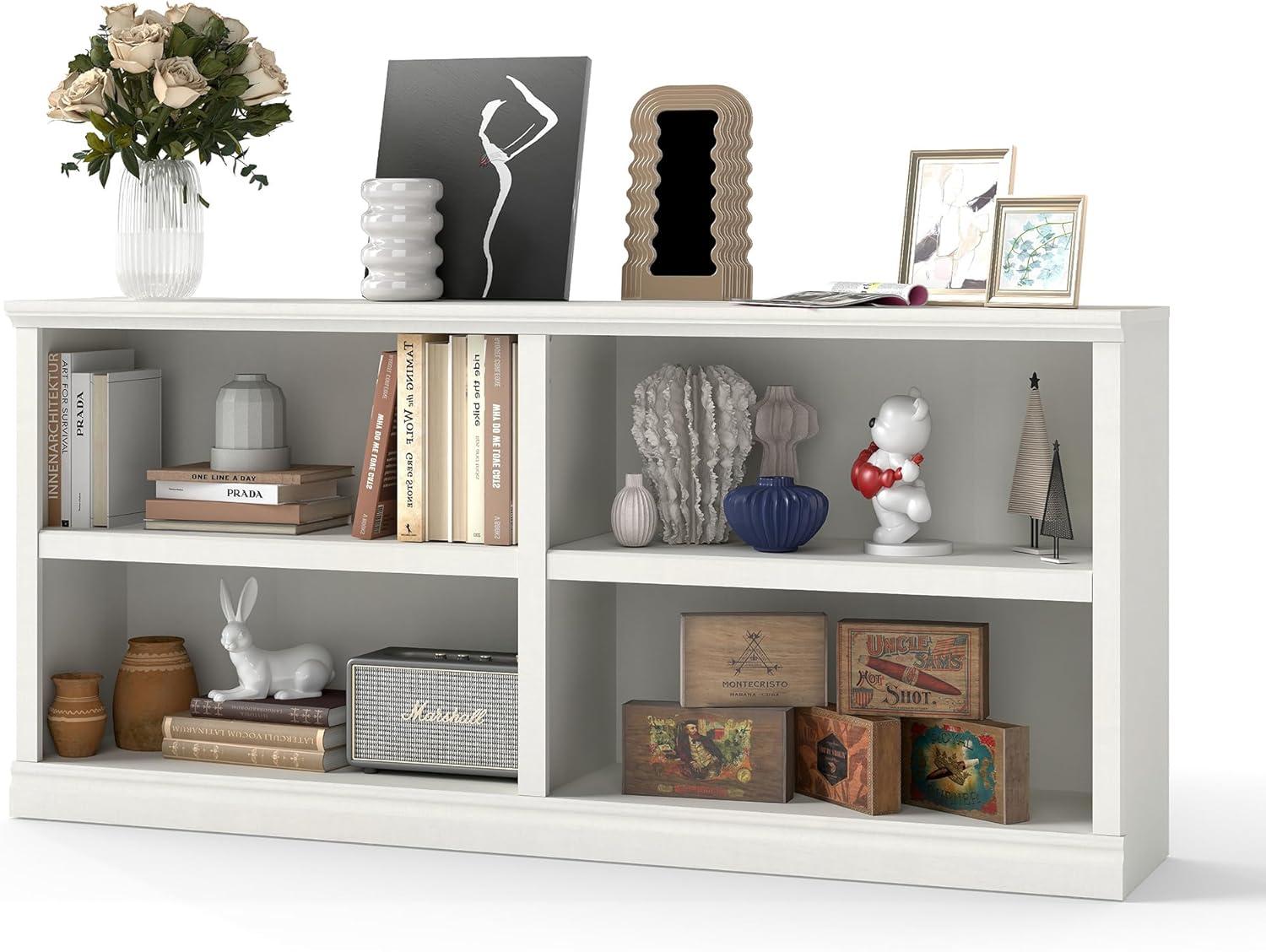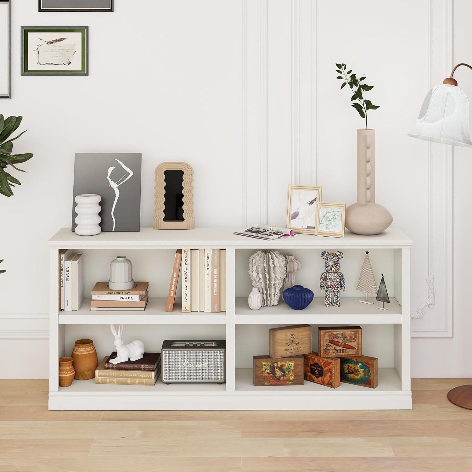 You don’t have ‍to move much to notice⁣ the blini White Bookshelf ‌Double Wide 64-inch — or simply⁣ the double-wide white bookcase — settling ‌into ​the room like a low, steady ledge. about waist-high and stretching just over five feet, it gives the wall a horizontal‍ pause; light skims⁣ across ⁣the‌ smooth, slightly glossy manufactured-wood surface.Slide a ⁢hand along a shelf and the laminate feels sealed and even, while the two-tier, four-cube arrangement keeps the overall look⁣ surprisingly airy ​despite its visual breadth. Books lean, a planter softens⁤ a corner, and from diffrent angles‌ the thin shelf lines create a quiet rhythm that⁣ changes as you walk ⁢past.