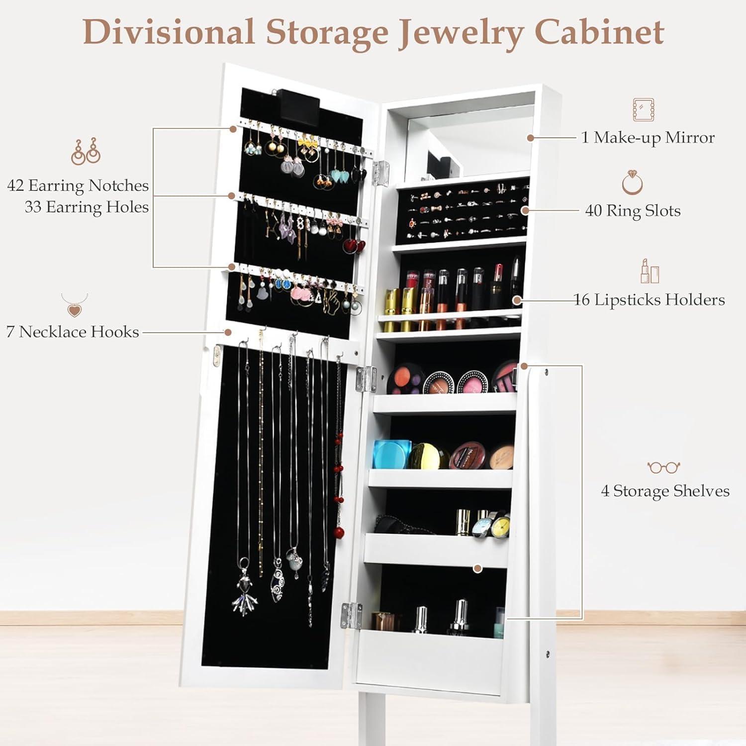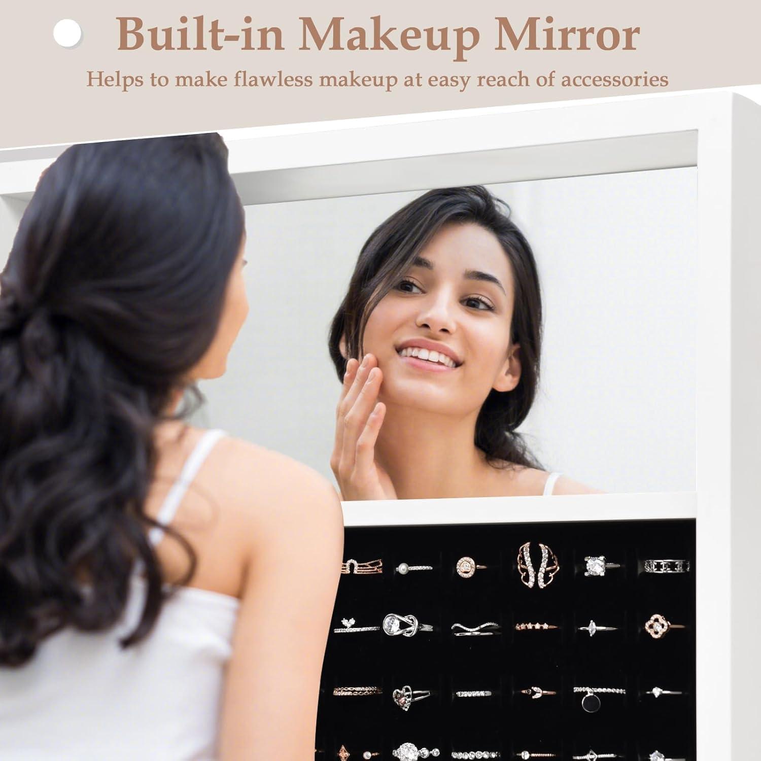 After spending considerable time with this elegant jewelry organizer, we appreciate how seamlessly it blends style with functionality. The 18 built-in LED lights illuminate every corner,making it effortless to select jewelry even in dim lighting,while the full-length mirror is a game-changer for quick,head-to-toe outfit checks. The soft velvet lining offers delicate protection, so our pieces remain scratch-free and pristine. Its sturdy MDF construction gives us confidence in its durability, ensuring this stands as a long-term addition to our bedroom or dressing room.