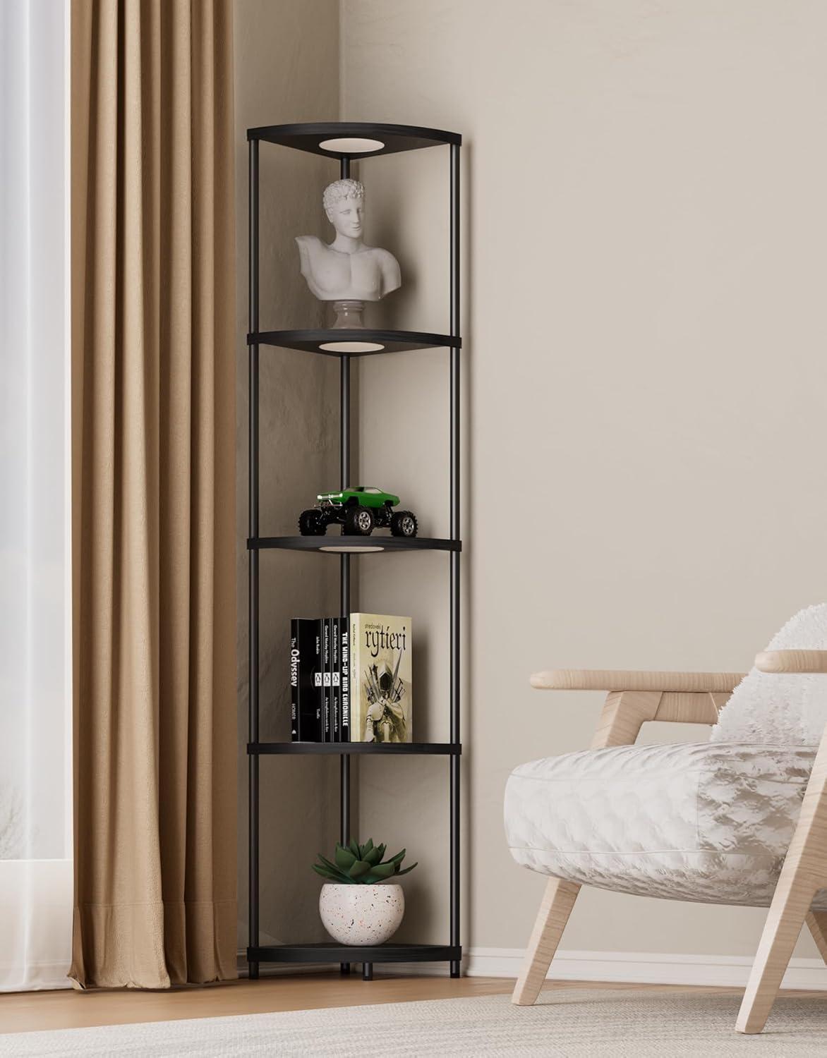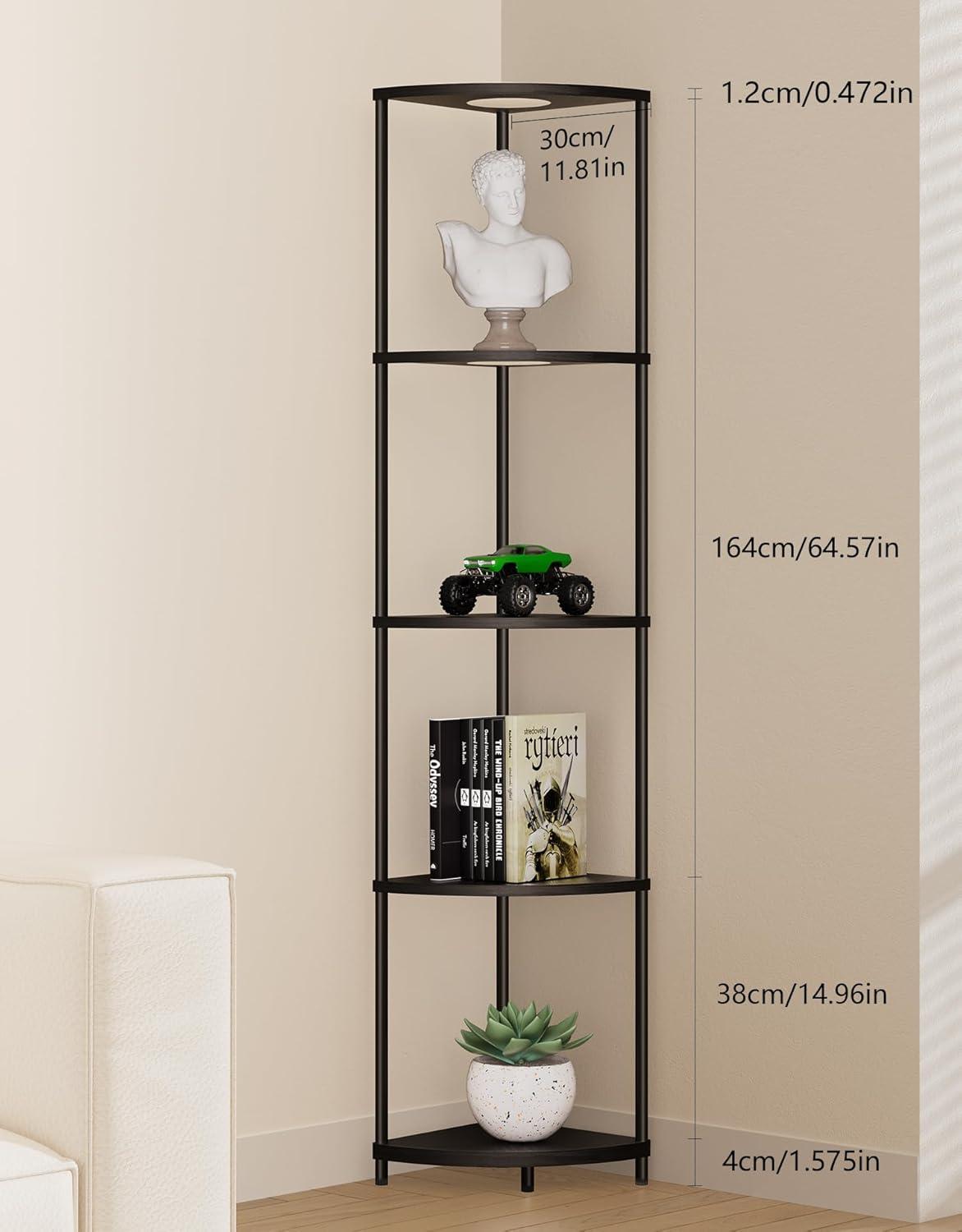 This multifunctional corner shelf combines stylish storage with innovative lighting, standing tall at 64.5 inches to fit perfectly into any wall corner without overwhelming the space. Its sleek black finish and metal pole construction create a modern yet understated look that complements a wide range of interior styles, from contemporary living rooms to cozy bedrooms and professional offices. The five-tier design offers ample room for displaying treasured collectibles, books, plants, or decor, while the compact footprint makes it ideal for smaller areas where space optimization is key.