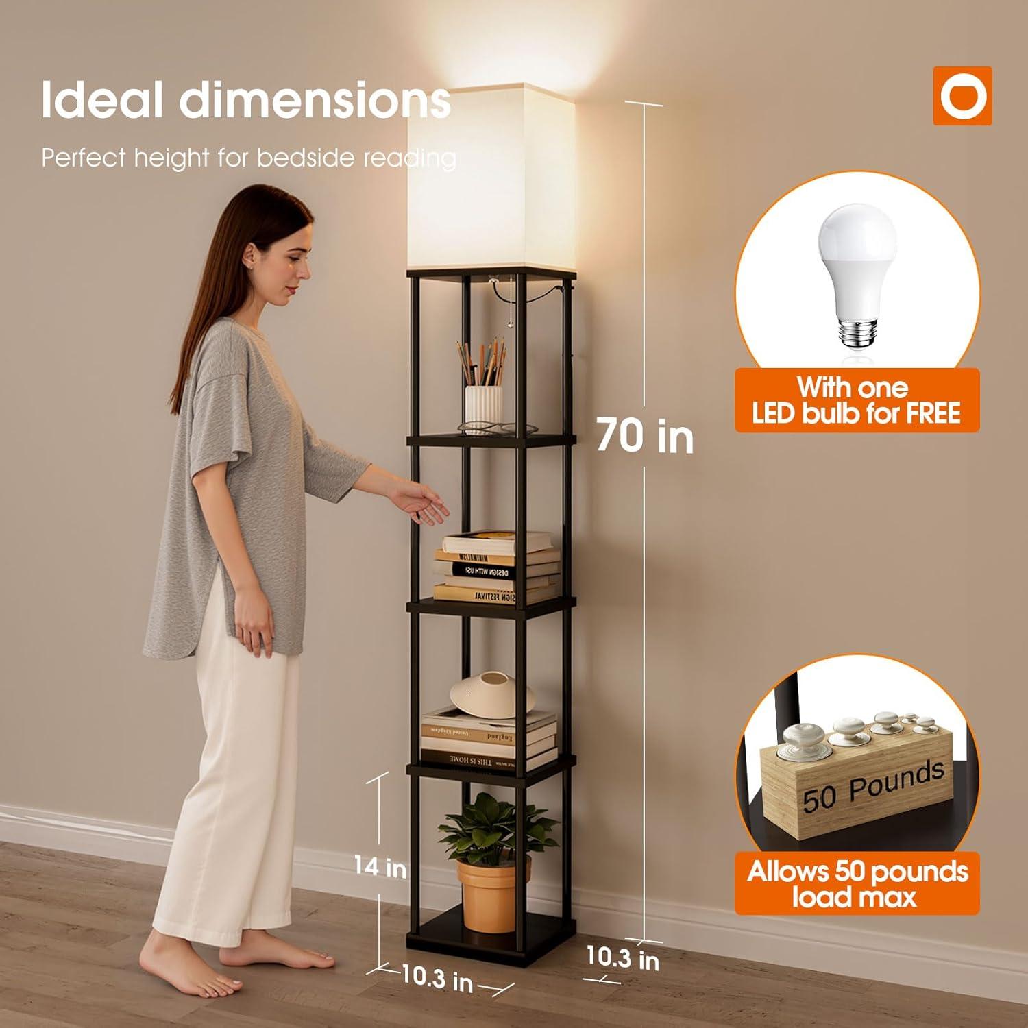 What truly ⁤sets this floor ⁤lamp apart is its ingenious‌ 5-tier shelving design, which transforms a ⁢simple light source into a multifunctional storage and ​display tower. Each ⁢shelf is crafted from⁢ solid wood and sturdy enough to hold over‍ 50 pounds, giving us ample space to organize books, plants, or decorative pieces ‌without worrying about ⁣stability. Standing at 70 inches tall, it fits seamlessly into corners or narrow ​spaces, making it a perfect ⁢solution for compact living rooms, bedrooms, or offices where every inch counts.