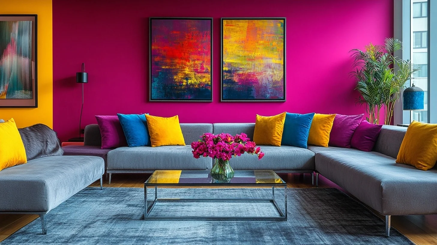Showcase rich fuchsia tones accented with pops of contrasting colors like teal or mustard yellow. This bold combination creates a contemporary and eye-catching living space.