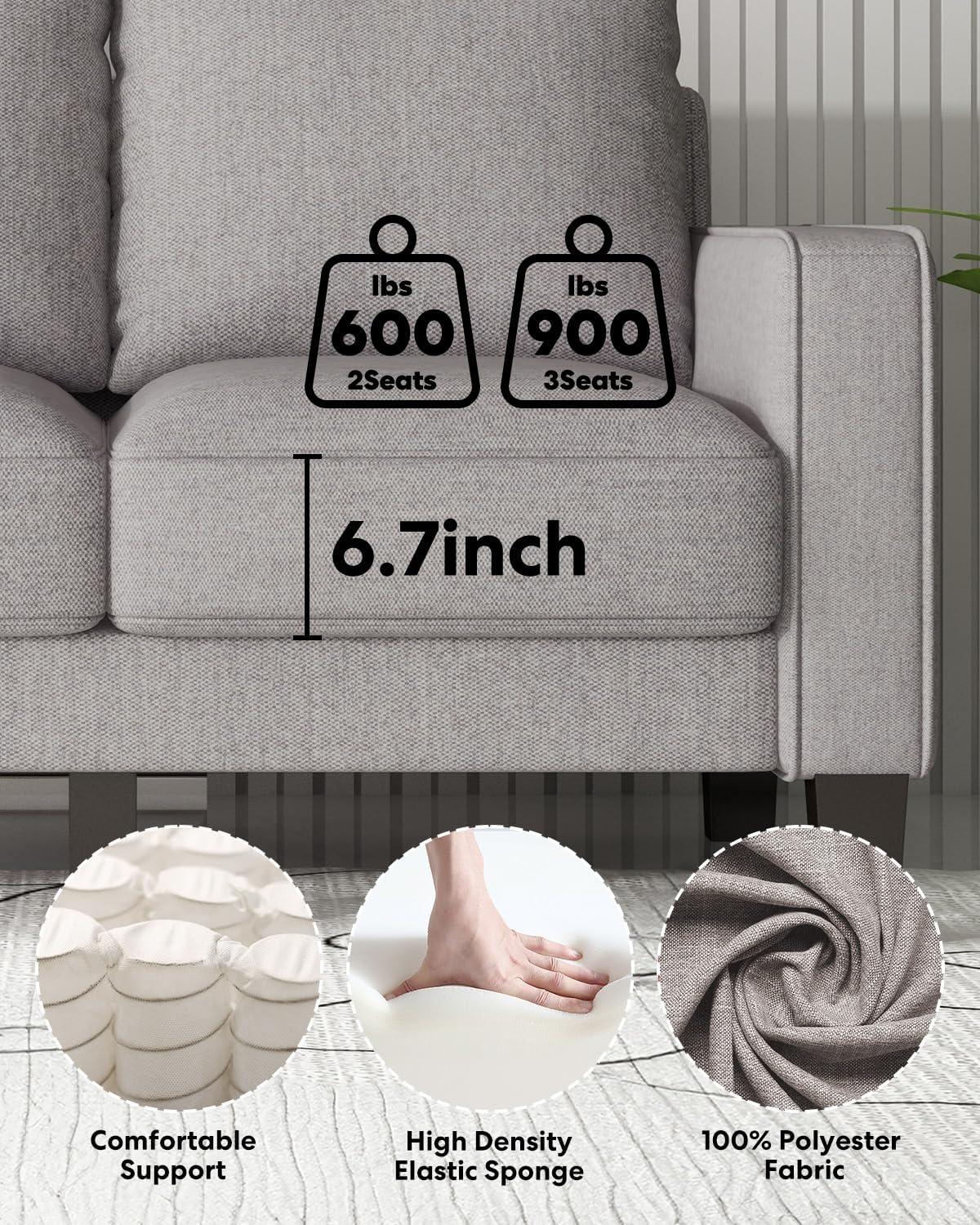 Living with the 2 Piece Sectional Sofa Set-Comfy Upholstered Couch Set, Solid Wood Leg, Ultra Thick Cushion, Seats Storage, Including 3 Seater Sofa and Loveseat Sofa, Living Room, Apartment, Light Grey over months shifts the room in quiet ways: pathways soften around it, a favorite seat claims the light, and the two pieces quietly define where things happen. You see the cushions yield in the spots that get used most, the fabric mellowing with touch, and small scuffs and creases that feel like part of the room’s history in daily routines.Storage gets folded into ordinary tidying, blankets and magazines find habitual places, and the set’s presence becomes as ordinary as the morning cup. In regular household rhythms it simply blends into everyday rhythms.