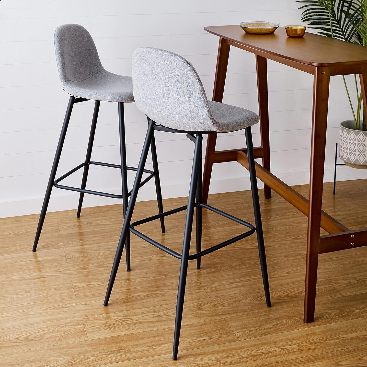 Over time the CangLong Upholstered Bar Height Stool Chair with Metal Legs for Bar, Kitchen, Dining Room, Living Room and Bistro Pub, Set of 1, Grey quietly finds its place; you notice it in the small movements of daily routines rather than on day one. As the room is used it shifts — a slight scuff on a leg, the fabric softening where people habitually perch — and those marks fold into the surface wear of the space.Comfort shows up in repeated, ordinary moments: quick breakfasts, a pause between chores, leaning in conversation, and it becomes a familiar presence in regular household rhythms. It becomes part of the room.