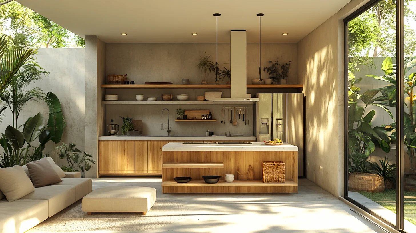 This nook emphasizes calmness through muted tones, simple furnishings, and natural materials like wood and stone. The uncluttered layout fosters a serene environment, perfect for those who seek a quiet, orderly space to prepare meals and unwind.