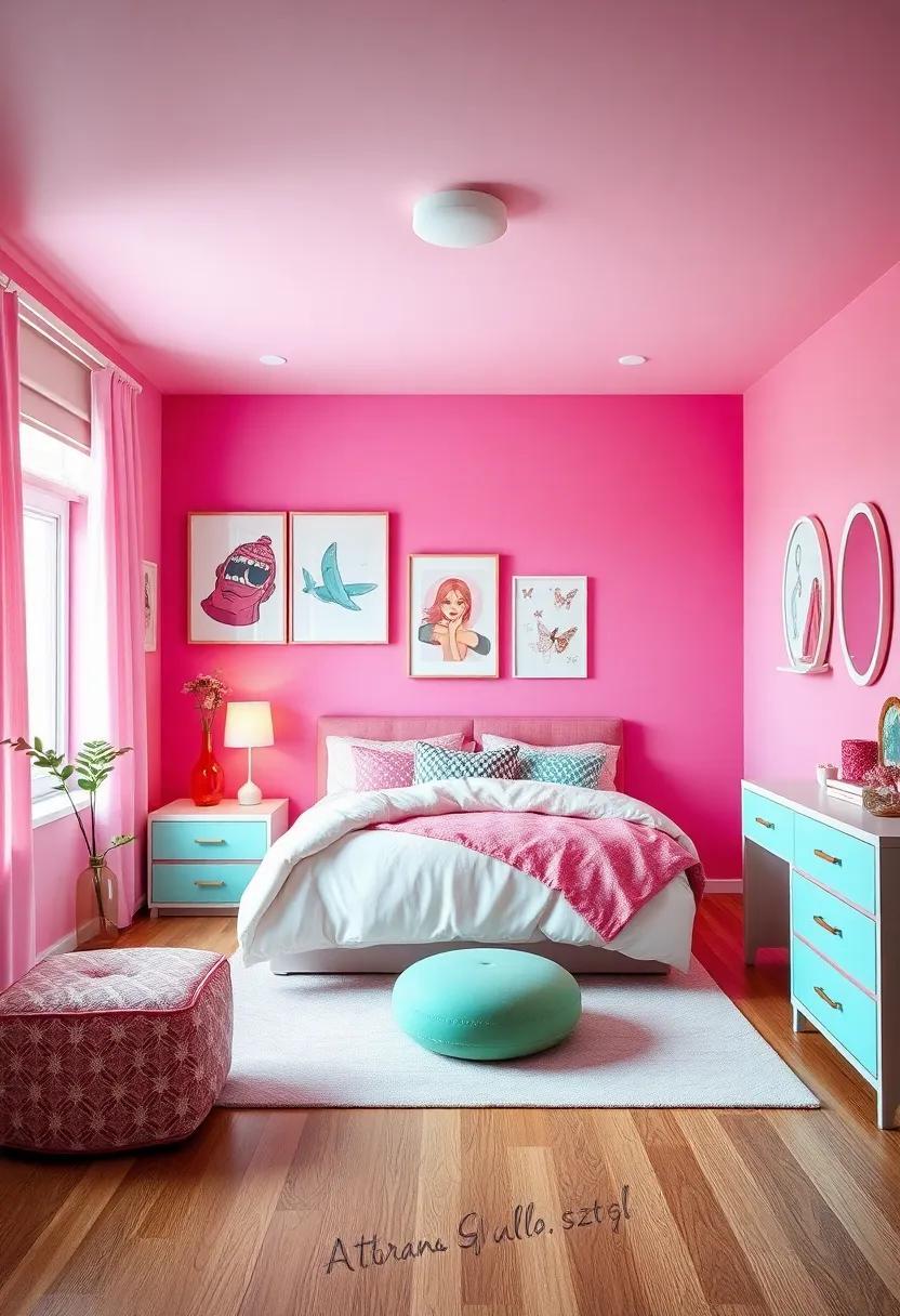 Infusing a room with lively shades of pink and mint creates a playful yet sophisticated atmosphere that sparks imagination and energy. Swirling patterns of these hues not only celebrate creativity but also establish a dynamic focal point that enlivens any teen girl’s sanctuary. Incorporating abstract art in these tones acts like an artistic energy boost, transforming plain walls into canvases full of movement and personality. The interplay of soft mint greens with bold pink swirls encourages a balanced mood—energizing without overwhelming, inviting relaxation while inspiring vibrant daydreams.
