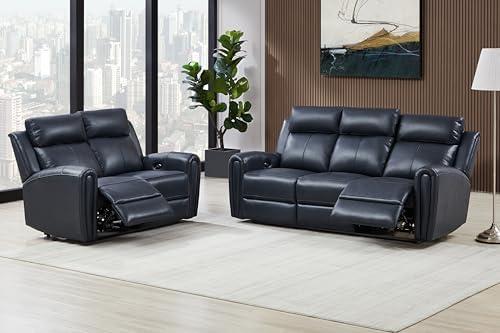 Genuine Leather Power Reclining Sofa Set with USB Port and Drop Down Table