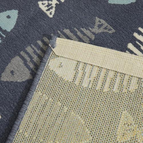 Transform your living space with a rug that embraces the charm of coastal decor. This stylish piece features a vibrant geometric fish design in soothing blue tones, making it a perfect addition to spaces requiring a nautical accent. Made from plush polypropylene, it is not only comfortable but also engineered to withstand the wear and tear of high-traffic areas. The non-shedding and stain-resistant properties ensure that it retains its appeal even in homes with children or pets, adding functionality to its aesthetic value. With a pile height ranging from 0.25 to 0.5 inches, it offers a balanced combination of softness and durability that works well underfoot.
