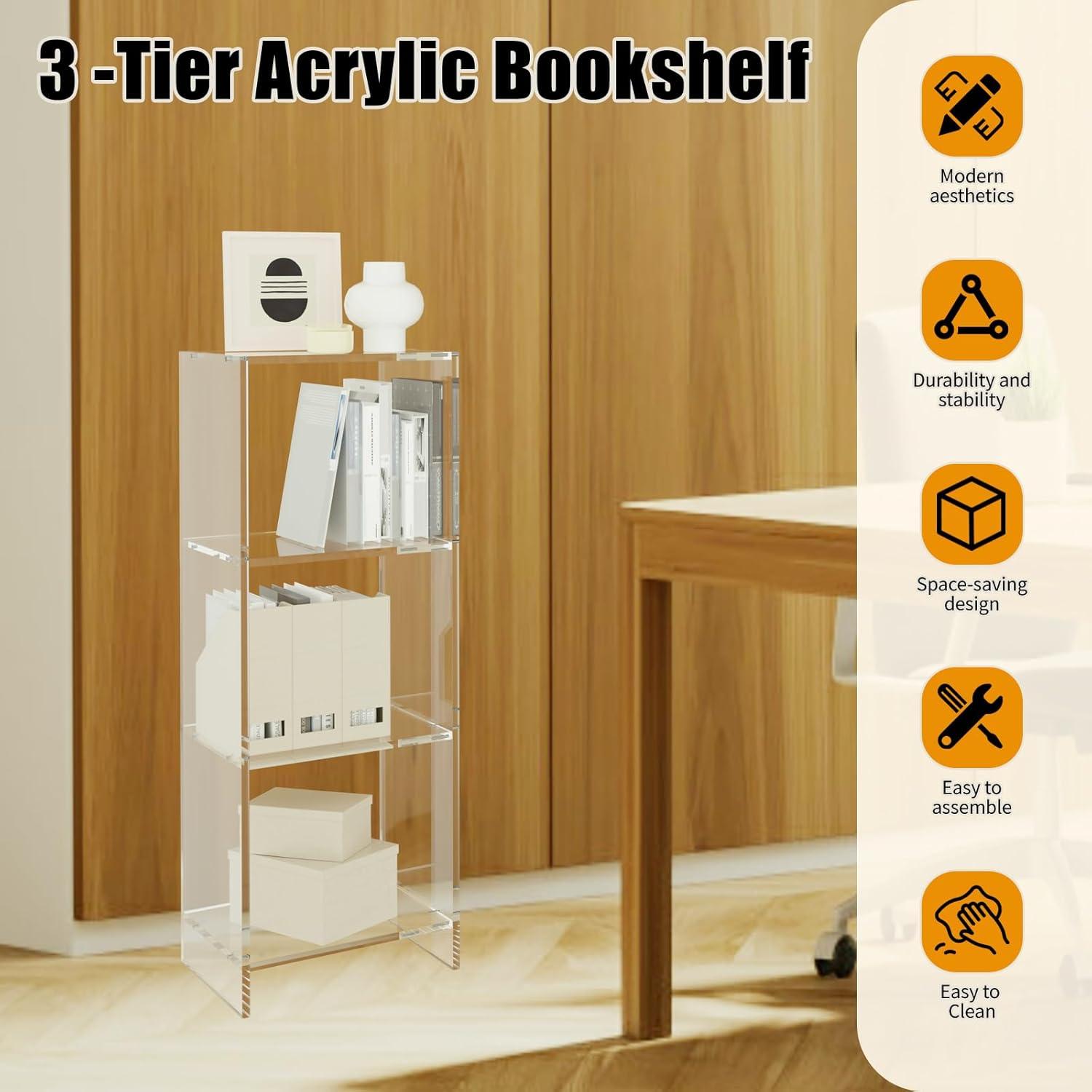 One ‍of‍ the standout features of this bookshelf is its remarkably slim profile,‌ measuring just 31.5″ tall with a narrow footprint that slips effortlessly into tight ⁢or awkward‌ spots.whether tucked beside a desk in a home office, nestled against a living ⁣room wall, or standing gracefully in a bedroom corner, it optimizes storage⁣ without overwhelming the​ space. The transparent acrylic⁤ construction only amplifies this effect, visually reducing bulk and keeping rooms feeling open⁤ and airy. The three-tier cube design offers ‌versatile storage for books, decor, or everyday ⁢essentials, proving that⁣ small ​does⁤ not ‍mean limited.