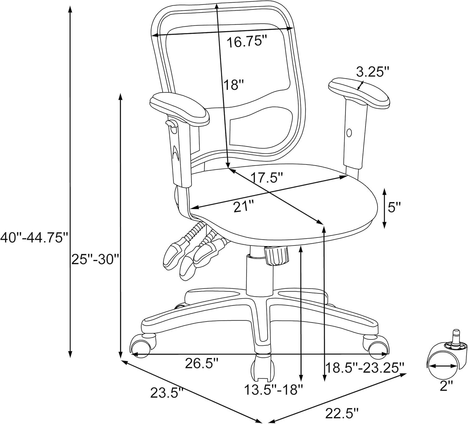 Desk interaction Casters roll easily on typical home floors; base usually tucks under desks, armrest clearance‌ varies with desk height.