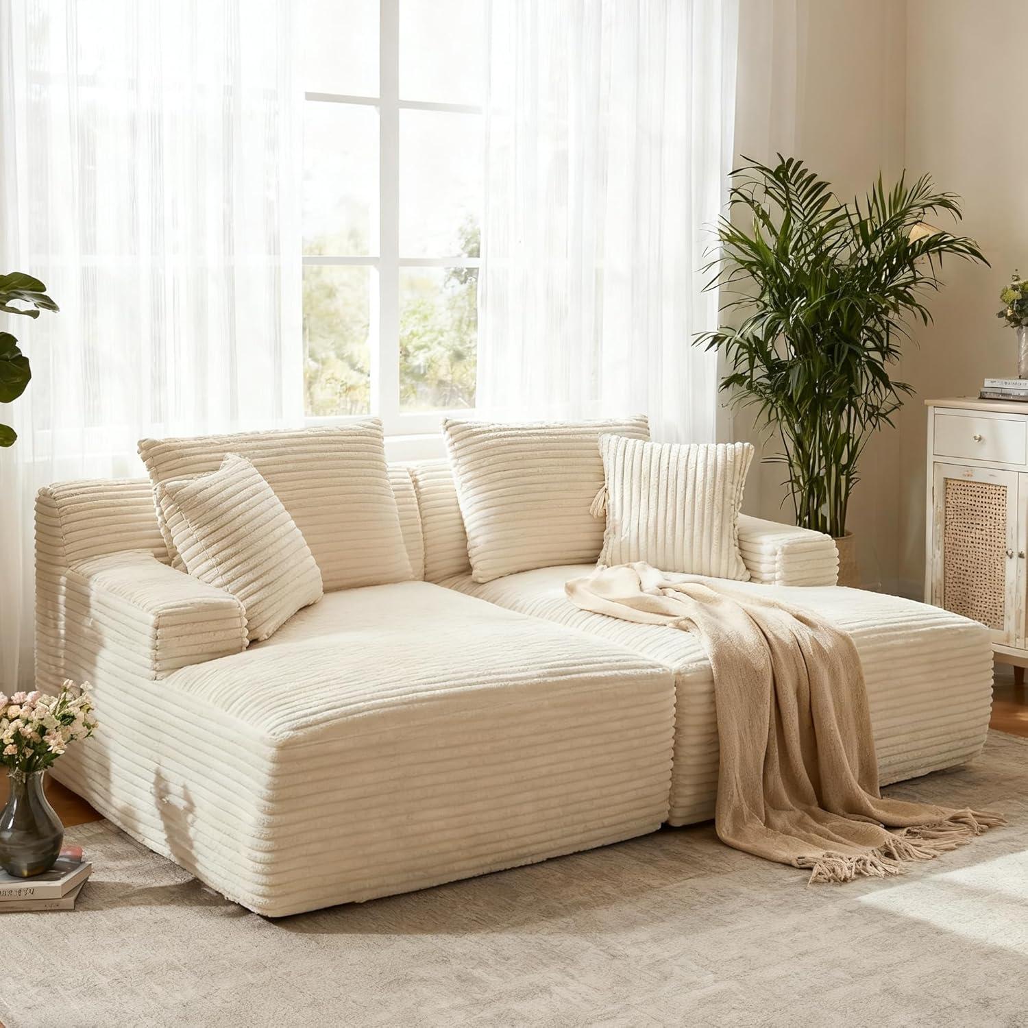 Compressed Corduroy Cloud Couch 78.8-Inch Double Chaise Soft Enough to Share
