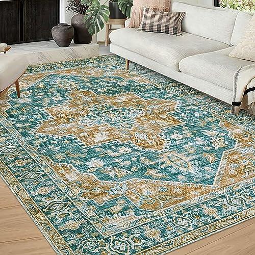 This stylish area rug combines both comfort and functionality, making it an ideal choice for various settings in your home, from living rooms to bedrooms. The ultra-thin, 0.16-inch low pile height not only marks a significant safety advantage by preventing tripping hazards but also allows for seamless placement in high-traffic areas. Crafted with high-quality, soft fabric, this rug features a unique vintage medallion design that enhances your home decor. Regular vacuuming keeps it looking fresh, while its stain and spill-resistant properties ensure longevity, even in homes with kids and pets.