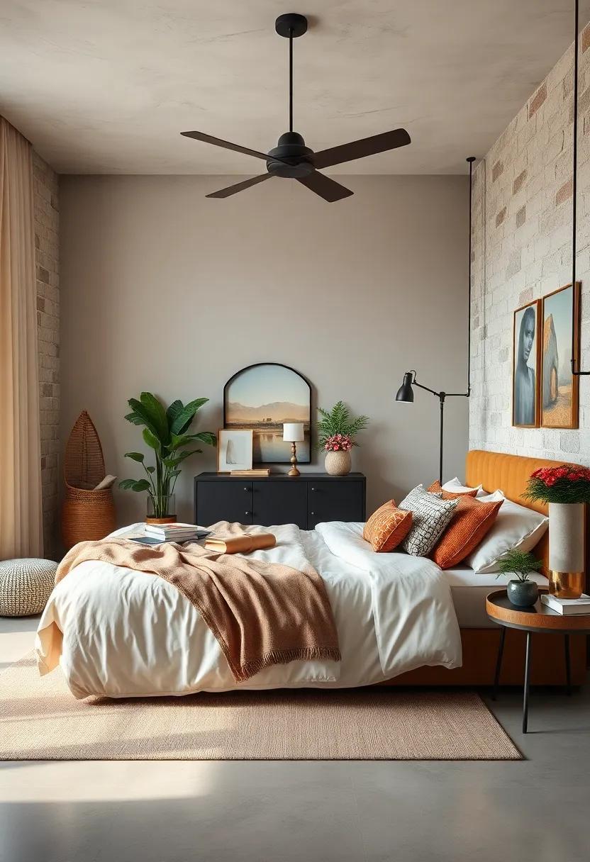 A Harmony of Vintage finds and Modern decor Pieces Blending Seamlessly in a Cozy Bedroom Setting
