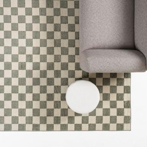 This area rug offers an eye-catching design that blends soft cream and olive green in a classic check pattern, perfectly complementing a variety of modern decors. Crafted from 100% recycled polyester, it showcases sustainability without compromising on comfort. The medium pile provides a soft, cushioned feel, making it an inviting addition to both the living room and bedroom. Additionally, its Oeko-TEX certification ensures that it meets stringent environmental and safety standards, giving you peace of mind while enhancing your home’s aesthetic.
