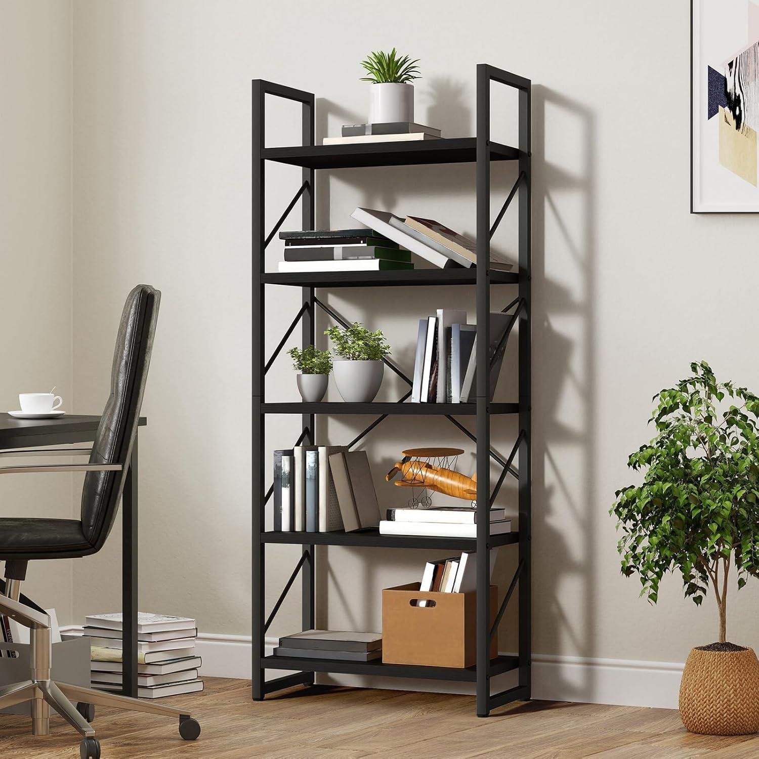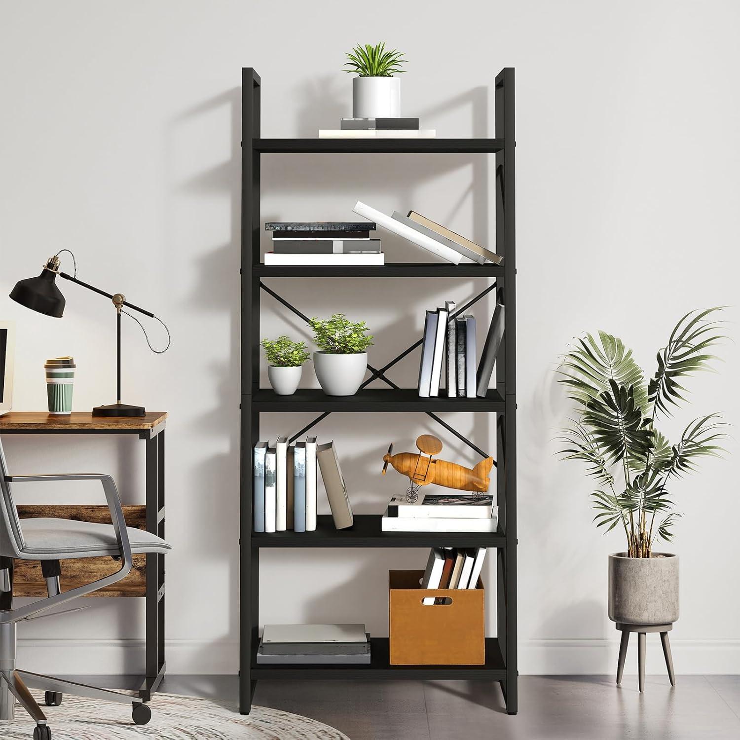 One of the standout qualities we appreciate is how the open 5-tier design maximizes storage without feeling bulky or overwhelming in any room.Each shelf provides ample space not only for books but also for displaying family photos, potted plants, CDs, or collectibles. the versatile layout means you can organize items by category or mix and match displays to keep your living or work area lively and accessible. the X-shaped metal rod detailing at the back isn’t just decorative – it reinforces the structure, ensuring stability even when shelves are filled to capacity.