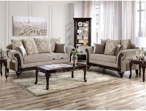 Furniture of America Safin Traditional Chenille 2-Piece Sofa Set in Beige
