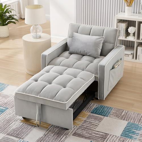 This convertible furniture piece effortlessly transforms from a stylish chair into a comfortable bed, making it ideal for small living environments such as apartments or bedrooms. Wrapped in luxurious velvet and filled with high-density sponge, it provides both aesthetic appeal and cozy comfort. With three adjustable positions—105°, 135°, and 180°—users can easily find their perfect lounging angle. It’s designed with sturdiness in mind, featuring a robust wood frame and premium steel tubing that supports up to 300 lbs, ensuring both durability and safety. Additionally, it comes equipped with lumbar pillows that enhance comfort, making it an excellent choice for guests or movie nights.