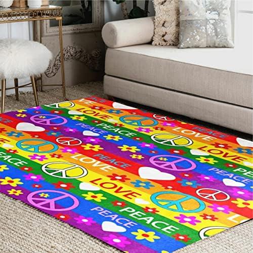 ALAZA Colorful Hippie Flower Peace Sign Love Area Rug Rugs for Living Room Bedroom 7′ x 5′