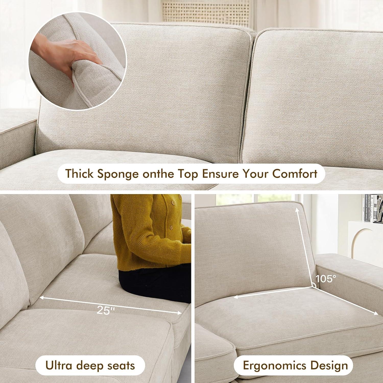 One of the standout features we’ve truly appreciated is the plush chenille fabric that covers this sectional.Its soft texture immediately invites you to sink in and relax, offering a level of comfort that elevates any living room experience. The fabric’s durability is evident as it resists everyday wear without sacrificing its inviting feel, making it an excellent choice for families or frequent guests. The beige tone complements a variety of decor styles, adding warmth without overwhelming the space.