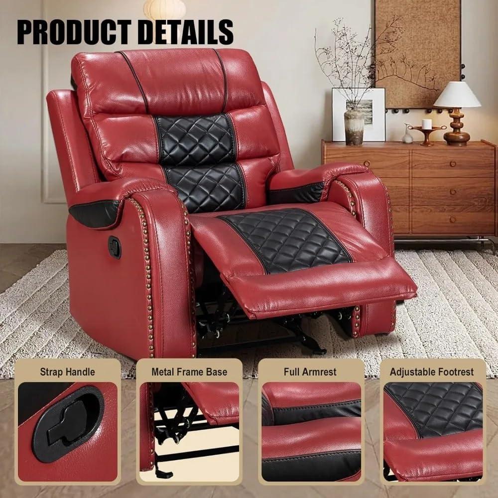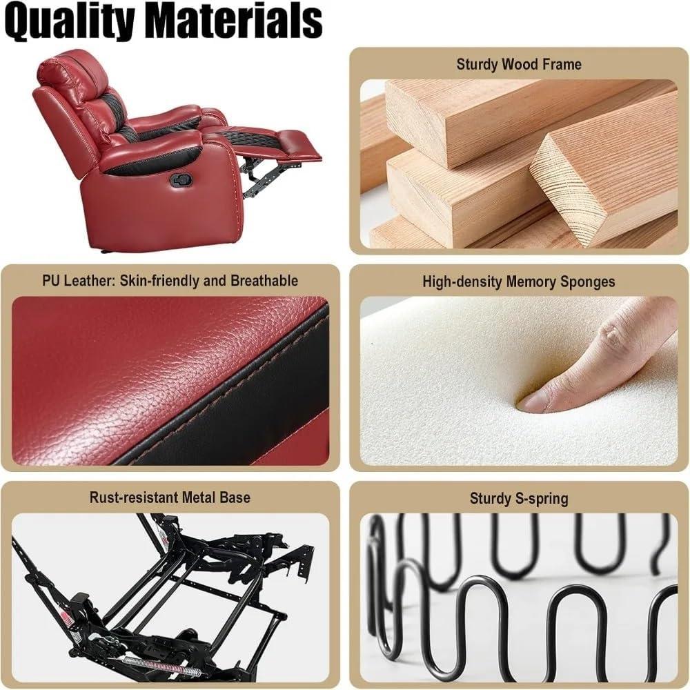 In setting up our living room, this recliner quickly became the centerpiece thanks to its elegant PU leather finish and timeless design. The soft, supple texture adds not only comfort but also a distinguished look that complements various interior styles, from modern minimalist to classic coziness.Its adjustable angles – from upright seating to a full recline – create an inviting spot for both afternoon naps and evening relaxation.The gentle rocking function gave us an unexpected bonus, turning this chair into a perfect nook for unwinding with a book or enjoying quiet moments.