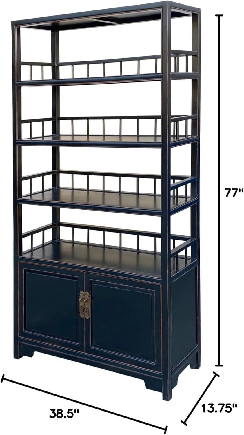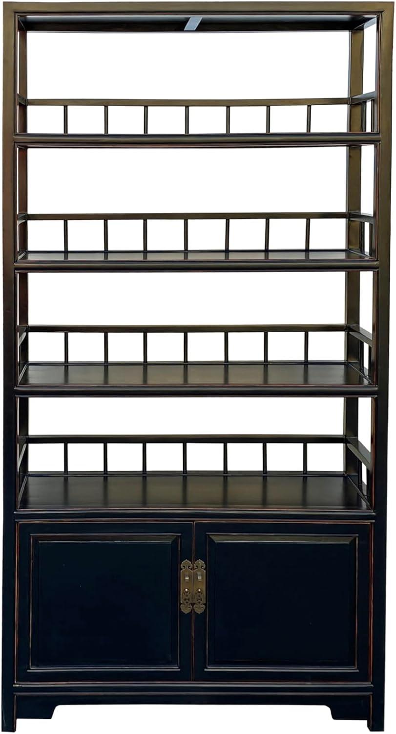 Overview of the Chinese Oriental Matte Black Lacquer Bookcase Display Curio Cabinet Acs7832