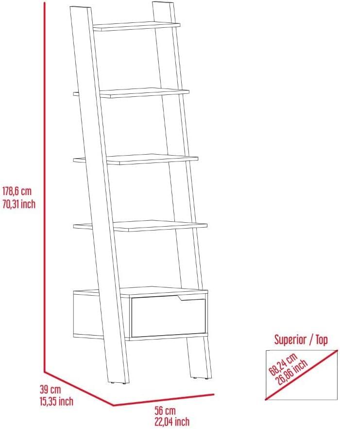 The single drawer embedded within this ladder-style bookcase stands out as a cleverly functional feature amidst its open shelving design. Its discreet size offers a perfect spot to tuck away small essentials-think charging cables, notepads, or even remote controls-keeping surfaces clutter-free without sacrificing style. The drawer’s smooth operation and subtle integration enhance the usability of the whole piece, making it more than just a standard bookshelf. For those who appreciate order but prefer their organizing tools to stay out of sight, this compartment strikes a perfect balance between accessibility and minimalism.